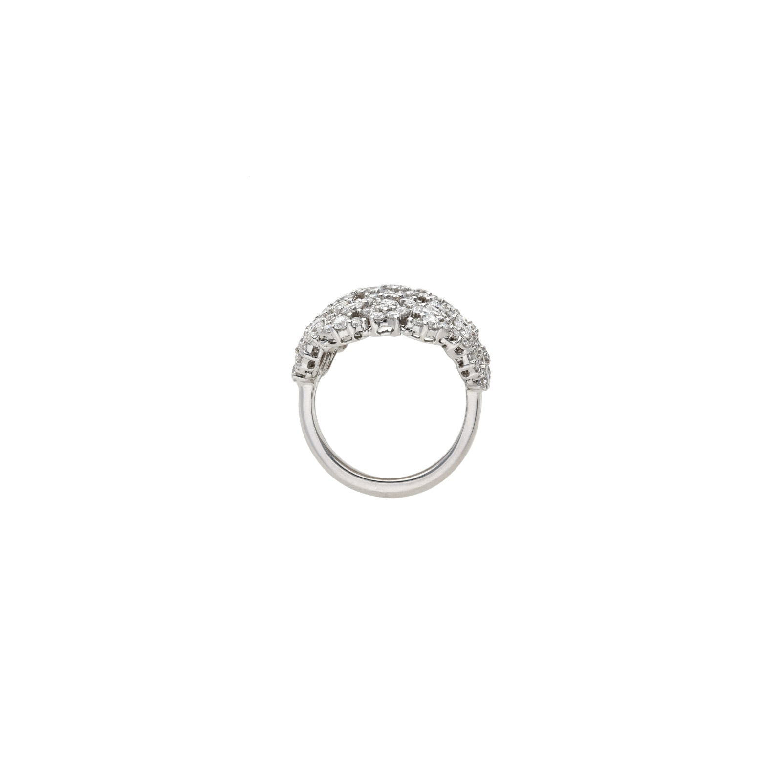 Anello fantasia di fiori in oro bianco con pavé di diamanti - 231-3047