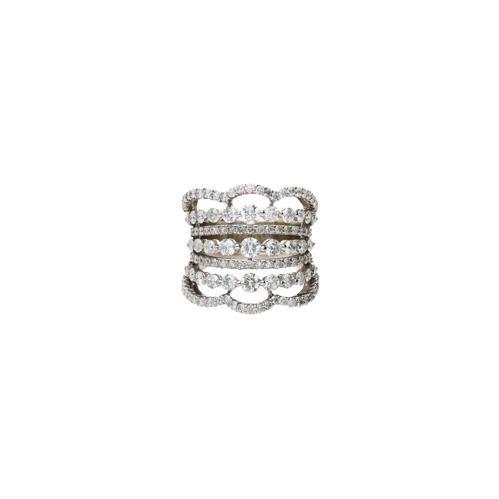 Anello in oro bianco multifile con pavé di diamanti - NSP4178