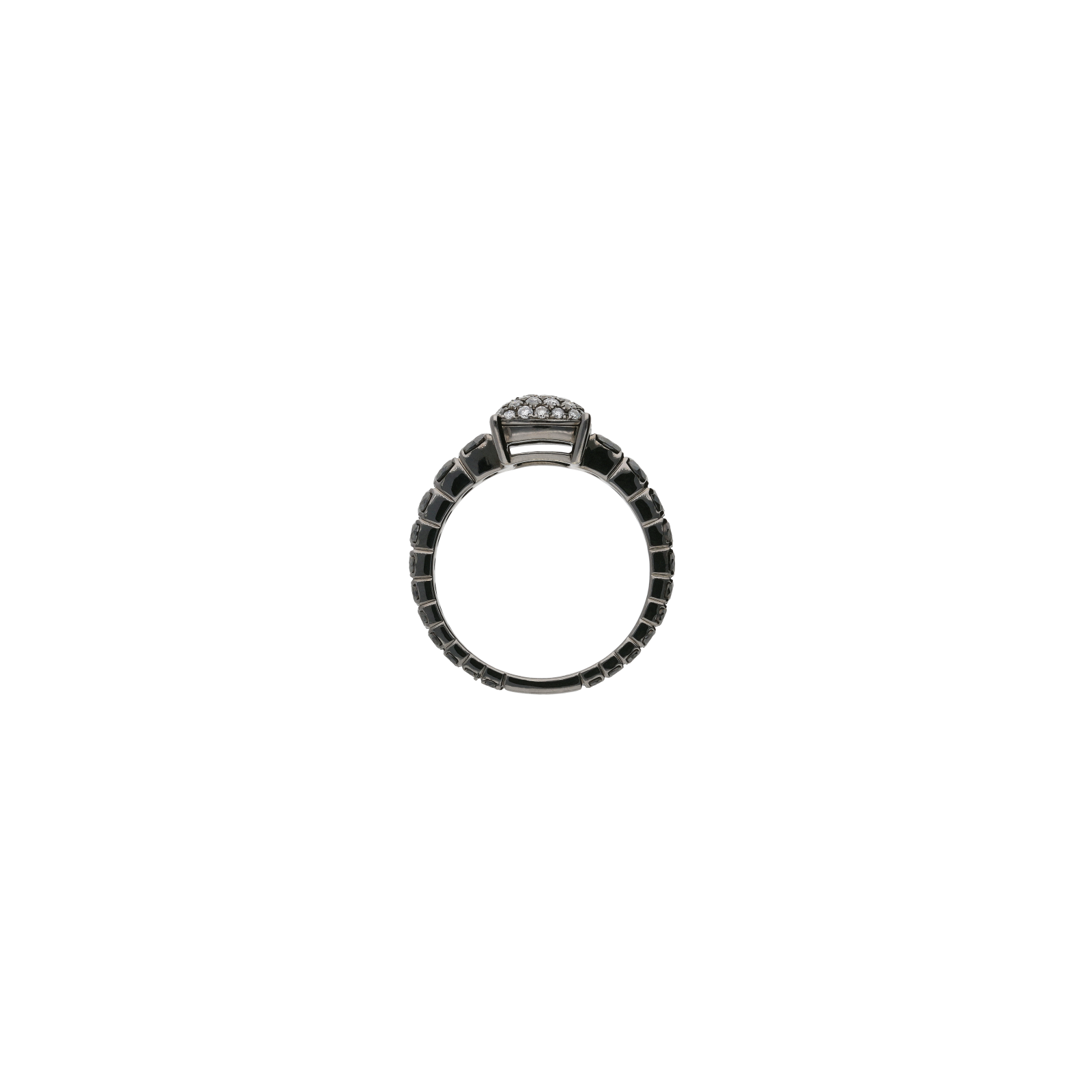 Anello in oro nero 18 carati con diamanti bianchi taglio brillante e diamanti neri taglio brillante