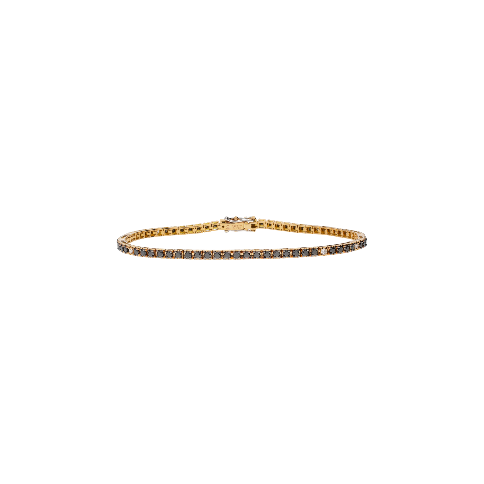Bracciale tennis collezione Forever in oro rosa 18 carati con diamanti neri taglio brillante e satelliti di diamanti bianchi taglio brillante