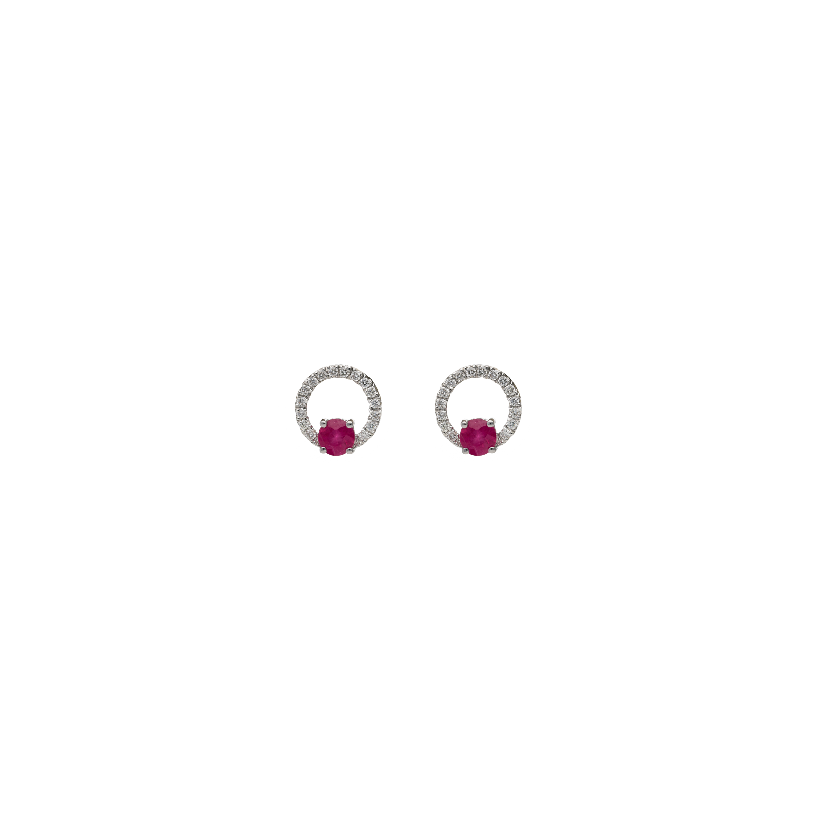Orecchini a lobo cerchio con diamanti e rubino centrale - 370-XE6258