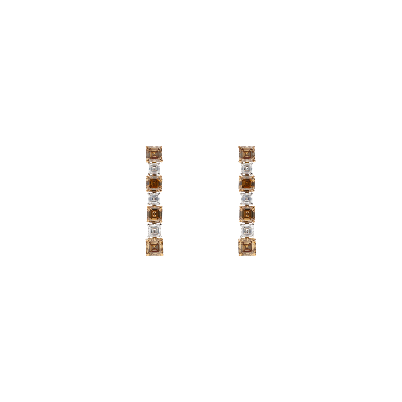 Orecchini Pendenti Collezione High Jewelry In Oro Rosa E Bianco 18 Carati Con Diamanti Brown E Diamanti Bianchi Taglio Square Emerald Certificati Gia