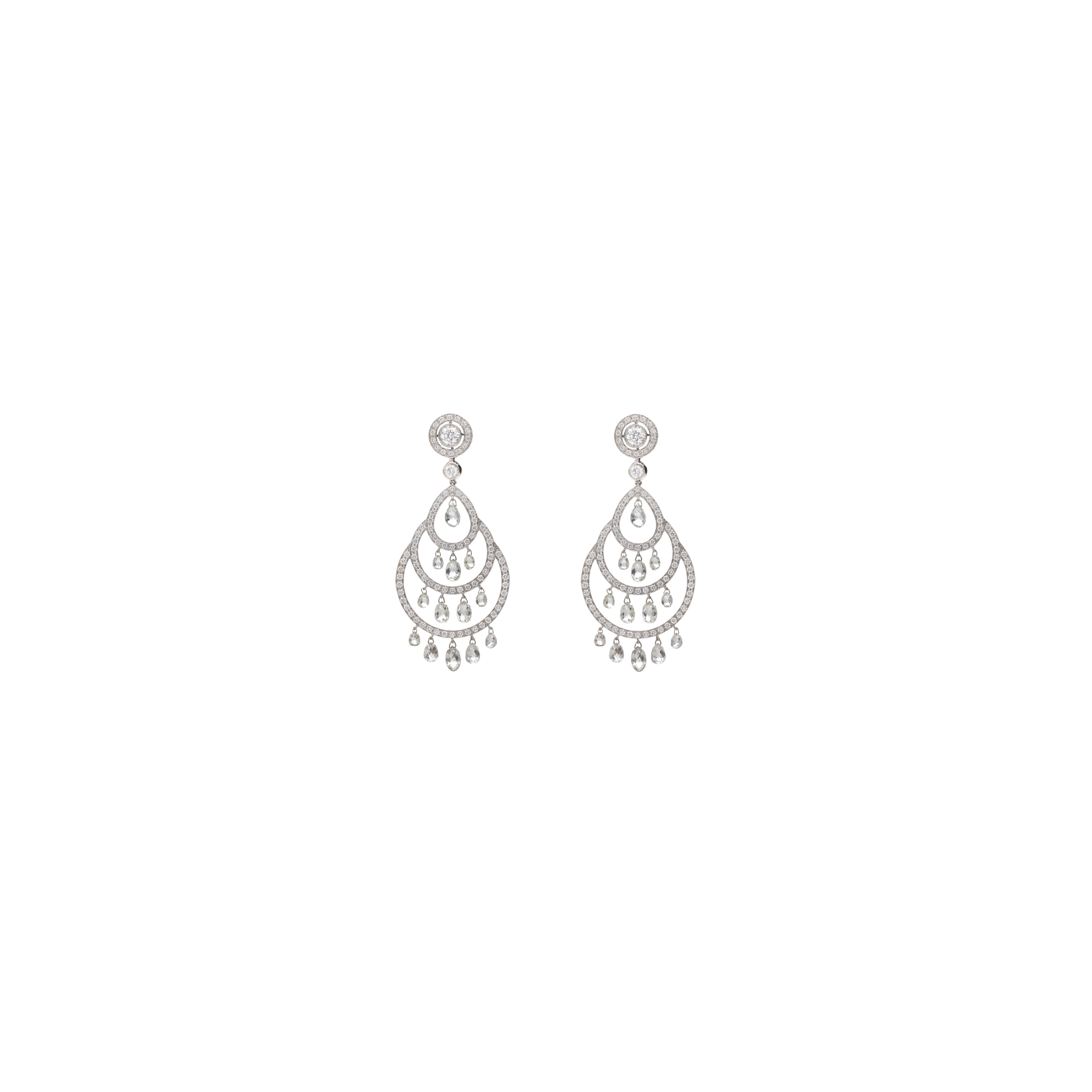 Orecchini pendenti fantasia in oro bianco con gocce pendenti e pavé di diamanti - F.68