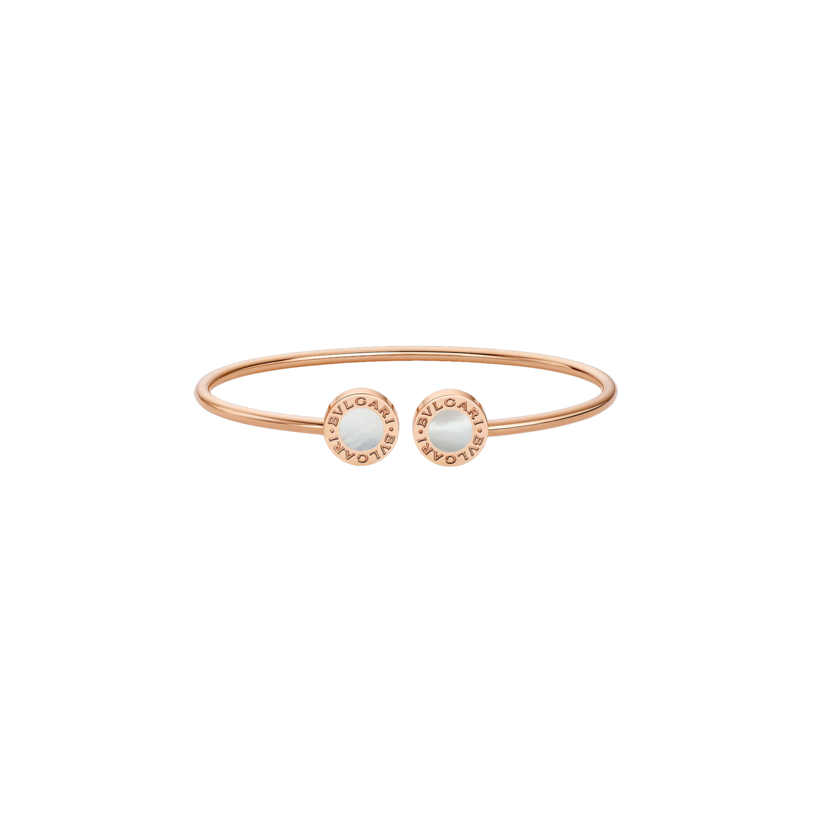 Rievocando le origini romane della maison, il bracciale BVLGARI BVLGARI in oro rosa 18 kt dà vita a un sofisticato connubio fra tradizione e modernità, stile e creatività. Ispirato alle iscrizioni incise lungo i bordi delle antiche monete romane, l'emblematico motivo circolare del gioiello è adornato da inserti in madreperla. Un modello dal fascino contemporaneo e dalla versatile eleganza. Bracciale BVLGARI BVLGARI in oro giallo 18 kt con inserti in madreperla.