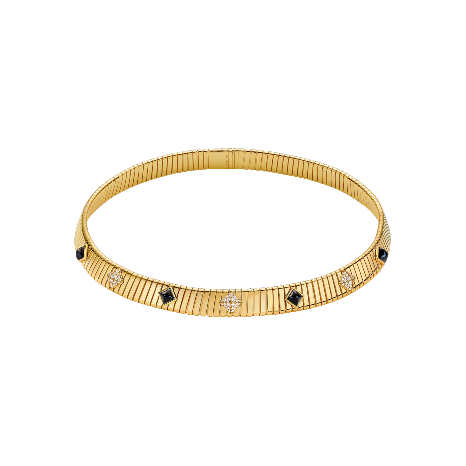 Collana bvlgari tubogas classic in oro giallo con onice e pavé di diamanti - CL860415