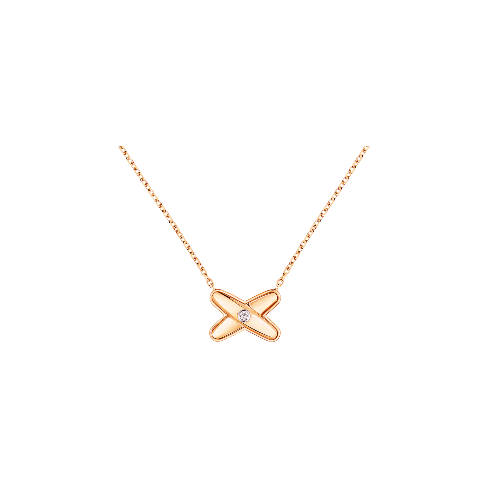 Ciondolo Jeux de Liens in oro bianco, incastonato con un diamante taglio brillante. La collezione Liens celebra il legame tra due persone, attraverso una reinterpretazione contemporanea di gioielli sentimentali. Jeux de Liens offre una palette gioiosa, ricca di freschezza e leggerezza, da combinare a piacere: i colori vivaci delle pietre preziose, la lucentezza dell'oro lucido o lo scintillio dei diamanti illuminano le maglie incrociate.