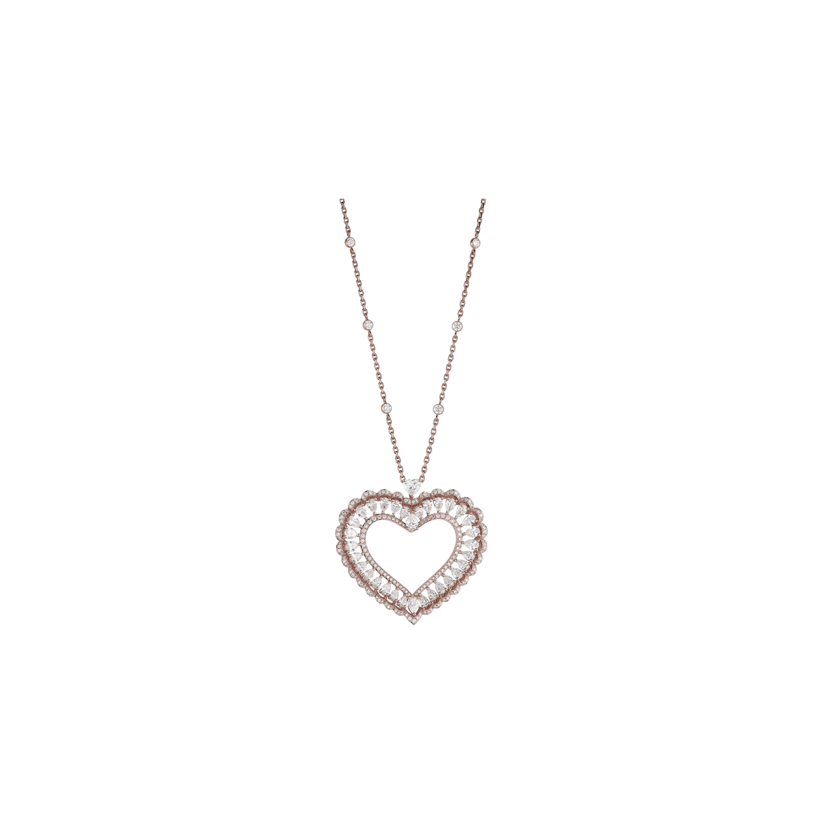 Il cuore entra a far parte dei motivi dei gioielli Precious Lace attraverso interpretazioni che esprimono tutto il romanticismo dell’emblema della Maison Chopard.