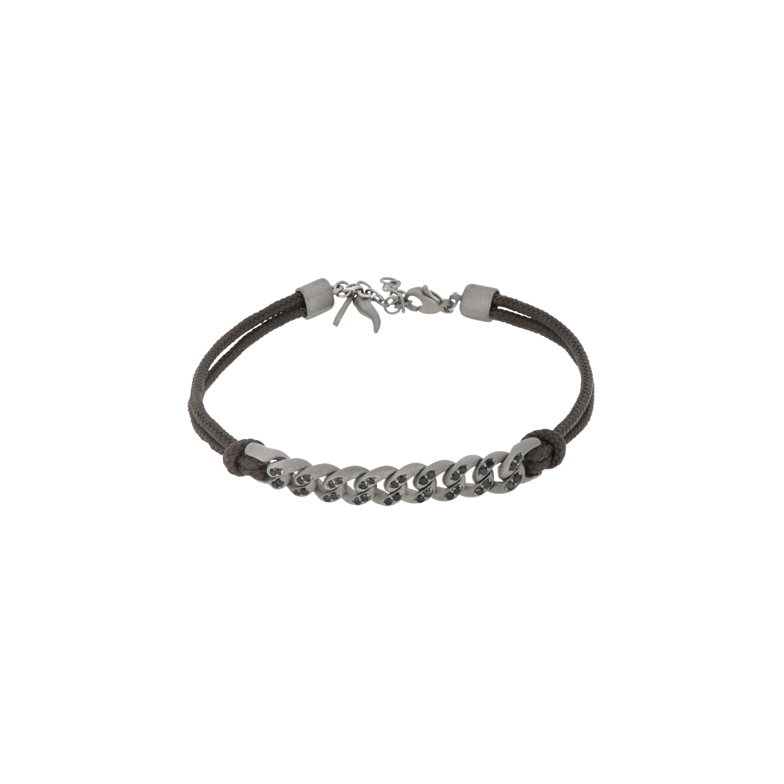 La robusta catena groumette è impreziosita da 37 diamanti neri (0.52 ct), creando un effetto di grande impatto. Il laccio mocha aggiunge un tocco contemporaneo e confortevole, mentre la chiusura in titanio garantisce sicurezza e un'estetica minimalista. Come sigillo distintivo, la targhetta con logo MANO|J è affiancata da un prezioso diamante nero incastonat. Un gioiello artigianale made in Italy per l'uomo che ama distinguersi con stile.