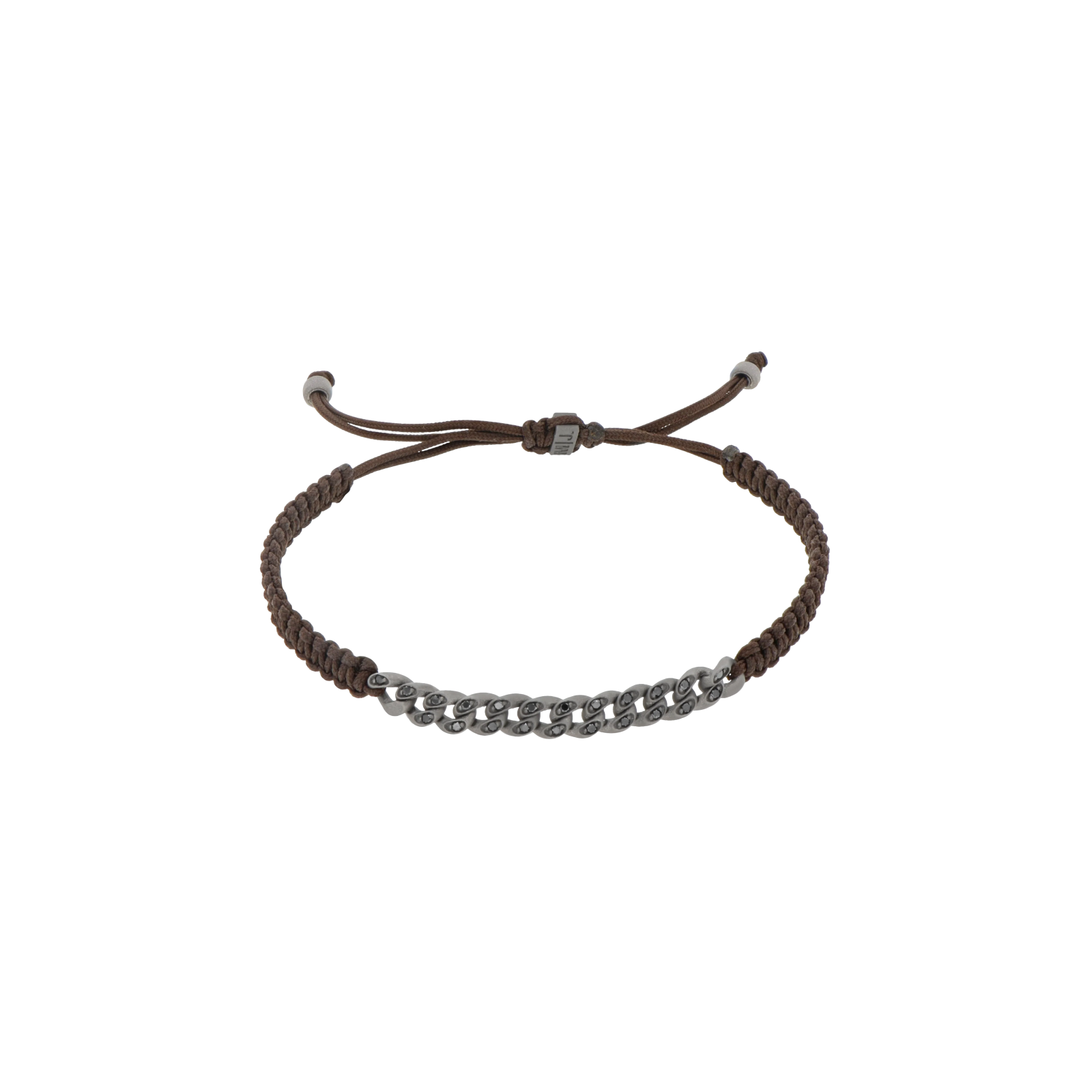 La robusta catena groumette nella versione mini è impreziosita da 24 diamanti neri (0.33 ct), creando un effetto di grande impatto. Il laccio mocha aggiunge un tocco contemporaneo e confortevole, mentre la chiusura in titanio garantisce sicurezza e un'estetica minimalista. Come sigillo distintivo, sulla chiusura con logo MANO|J è incastonato un prezioso diamante nero. Un gioiello artigianale made in Italy per l'uomo che ama distinguersi con stile.