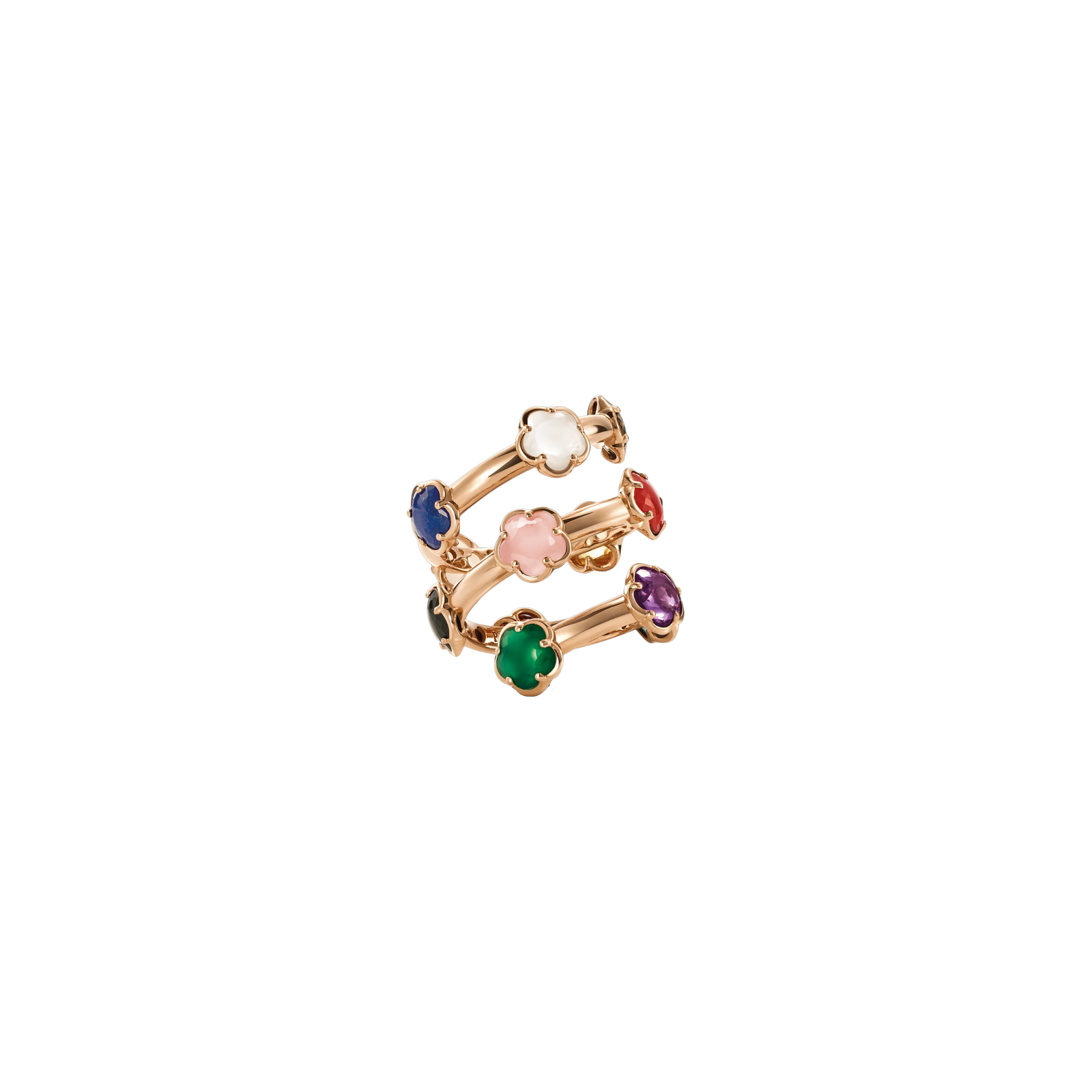 Anello contrarié figlia dei fiori in oro rosa con agata verde, corniola rossa, onice, pietra di luna bianca, calcedonio rosa, citrino, ametista, topazio blu london, agata bianca, granato rosso, quarzo fumé, lapislazzuli e diamanti bianchi - 16696R