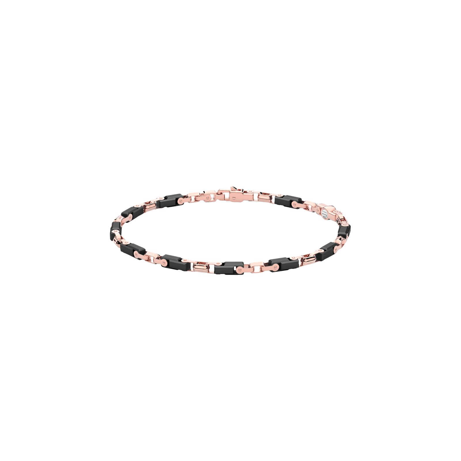 Bracciale Zancan in oro 18kt e ceramica nera. Il bracciale è composto da link geometrici che donano un design geometrico e meccanico al gioiello. Il contrasto tra oro rosa e lucente ceramica nera dona a questo bracciale un forte impatto visivo. Un gioiello della grande complessità meccanica, che esalta al massimo questo gioiello di altissima gioielleria. Il bracciale fa parte della collezione Ceramikgold, la collezione che unisce oro 18k e ceramica tramite complesse tecniche di lavorazione.