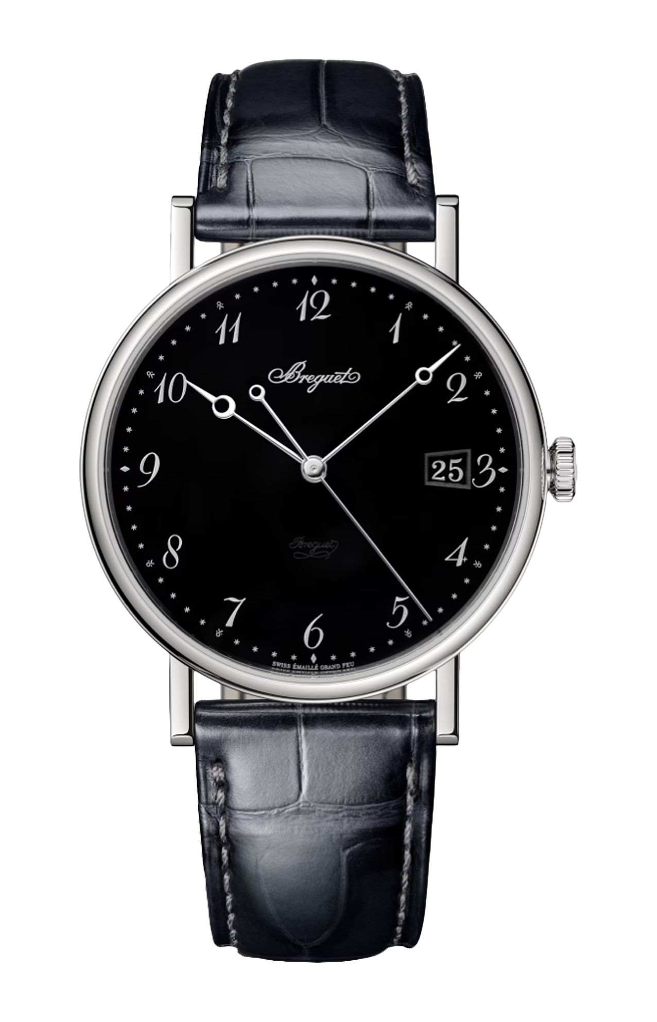 Prodotto Breguet puro, questo modello presenta tutte le raffinatezze di un orologio della collezione Classique: una cassa scanalata, fondello trasparente, anse, un quadrante disponibile in smalto "grand feu" o finitura guilloché e lancette Breguet con le loro caratteristiche punte aperte.