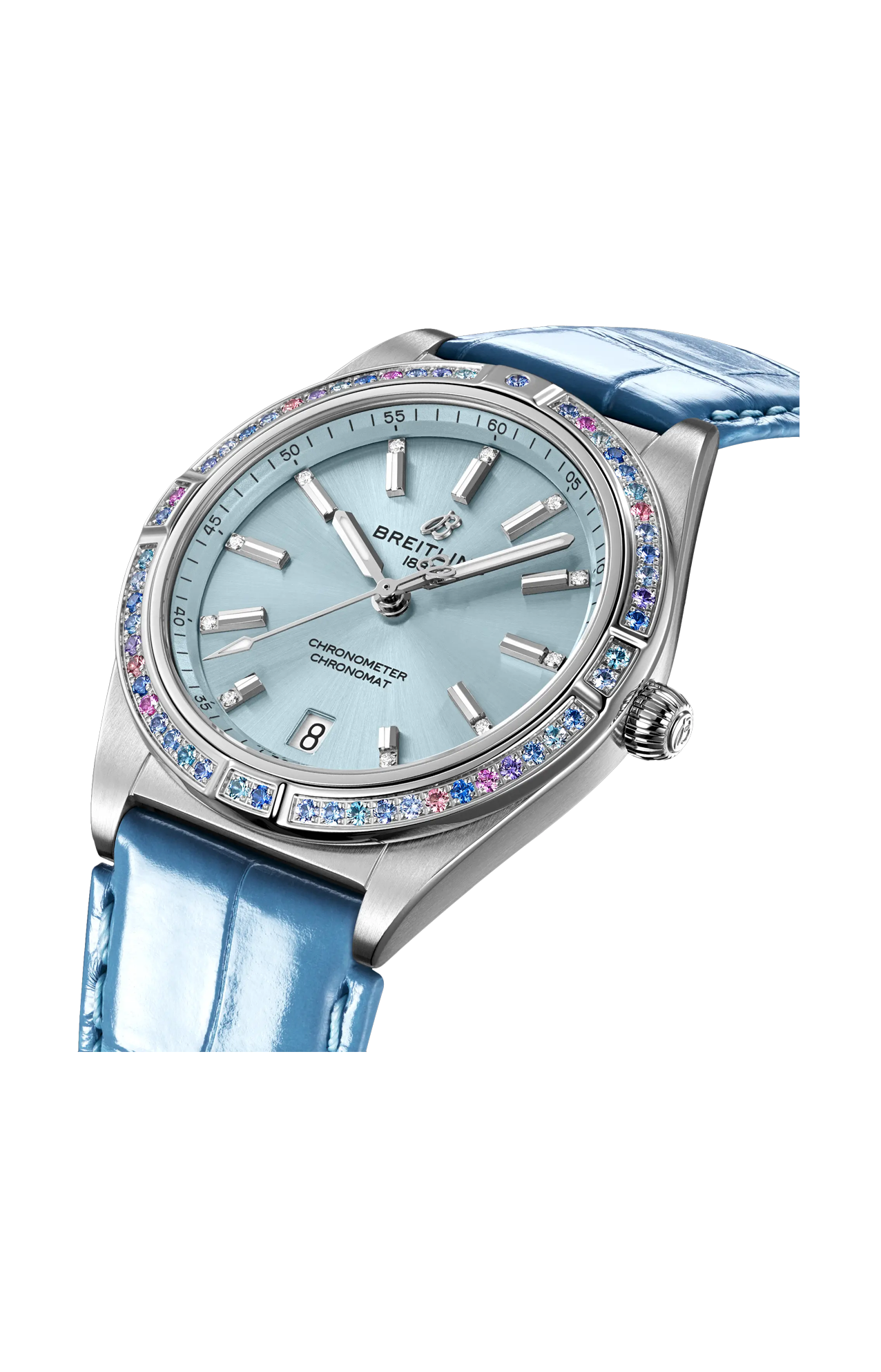 Accattivante e dal look prezioso, la capsule collection Chronomat South Sea chiama alla mente paradisi tropicali fatti di spiagge dorate, profondità marine, fiori variopinti e piante lussureggianti. Con quadranti metallici e madreperla, indici delle ore con diamanti incastonati e lunette con gemme incastonate dai colori vivaci, gli orologi si possono abbinare a un cinturino coordinato in pelle di alligatore o all’inconfondibile bracciale rouleaux in metallo di Breitling. Vivi un’estate senza fine con Chronomat South Sea.
