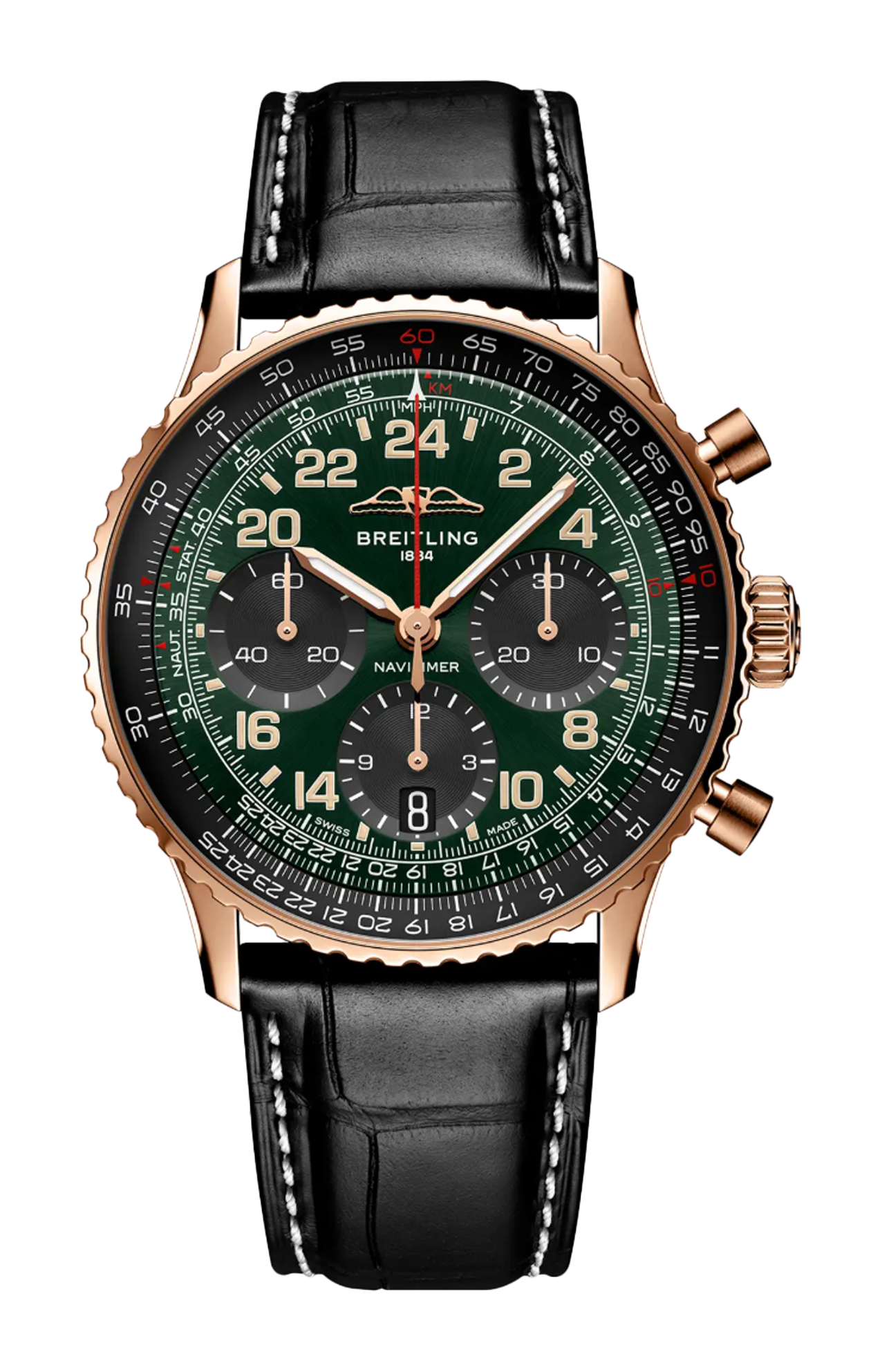 L’iconico cronografo da pilota di Breitling: perfetto per i viaggi spaziali. Già nei primi anni ’60, il Breitling Navitimer, con il suo regolo calcolatore circolare per effettuare i calcoli in volo, si era affermato come indiscusso orologio da piloti. Ma, nell’era della corsa allo spazio, era in atto un’altra competizione, quella tra gli orologiai che gareggiavano per essere i primi ad arrivare sui polsi degli astronauti. Ancora una volta, Breitling mostrò il proprio valore diventando ufficialmente il primo cronografo da polso svizzero ad andare nello spazio: il 24 maggio 1962, quando Scott Carpenter decollò a bordo della navicella Mercury-Atlas 7 indossando il Navitimer Cosmonaut. L’orologio era stata una sua personale richiesta, una variazione dell’iconico Navitimer con l’aggiunta di un quadrante da 24 ore per distinguere in orbita il giorno dalla notte. La Mercury-Atlas 7 circum navigò tre volte la Terra prima di ammarare nell’Atlantico, scrivendo la storia dell’aeronautica, e dell’orologeria. Il nostro omaggio al Cosmonaut, limitato a 250 esemplari, modernizza l’estetica dell’originale con un quadrante verde e una cassa in oro rosso 18 carati. E questa volta la principale modifica non è pensata per l’assenza di gravità, ma per la vita di tutti i giorni: un movimento cronografico a ricarica automatica, il calibro di manifattura Breitling B12. Come ulteriore tributo, il fondello riporta l’incisione della data della missione di Carpenter, la limitazione a 250 esemplari e la frase «First Swiss Wristwatch in Space» (primo orologio da polso svizzero nello spazio).