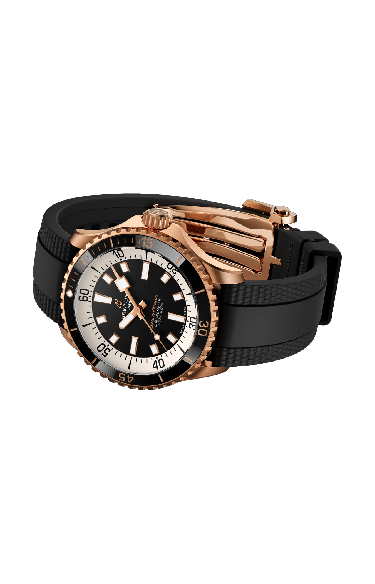 Prestazioni e stile per tutte le attività acquatiche. Negli anni '60, il nuovo sport dell’immersione subacquea faceva furore. Per i sub, il cronometraggio era essenziale e Breitling si impegnò a fornire loro l’orologio subacqueo più preciso possibile, eliminando qualsiasi caratteristica che non supportasse le necessità sottomarine salvavita. Questo orologio semplificato venne chiamato Slow Motion. Rimasero le linee pulite, i solidi indici luminescenti, le lancette quadrate e un anello del quadrante fortemente in contrasto – il tutto al servizio della massima leggibilità. Pratico? Sì. Ma ciò di cui la gente si innamorò era l’aspetto. Il nuovo Superocean ripercorre i codici di design celebrati dallo Slow Motion, aggiungendo caratteristiche moderne come la lunetta intarsiata in ceramica e i quadranti dai colori accesi. Le ampie lancette e gli indici Super-Luminova® luminescenti consentono una facile leggibilità sott’acqua. L’orologio è impermeabile fino a 300 m (1000 ft) nonché resistente agli urti, alla sabbia e all’acqua salata. La versione in bronzo si avvale di una lega speciale altamente resistente alla corrosione, ma nel corso del tempo continua a sviluppare una sottile patina che rende l’orologio ancora più unico. Le due opzioni per il cinturino (in caucciù e con bracciale metallico) presentano una fibbia deployante per regolazioni minime fino a 15 mm, per una semplice vestibilità sopra giubbottoni aderenti o mute. La lunetta intarsiata in ceramica, antigraffio, non si usurerà mai né sbiadirà. Per sicurezza, la lunetta è unidirezionale nella maggior parte delle taglie e bidirezionale con una chiusura brevettata nel modello da 46 mm. Ma il meglio è che non è più in senso stretto soltanto un orologio subacqueo – è adatto per il surf, il nuoto, per far colpo al bar della spiaggia o da sfoggiare a cena. Il Superocean bilancia alla perfezione la nostalgia della sua eredità e un look nuovo e fresco.