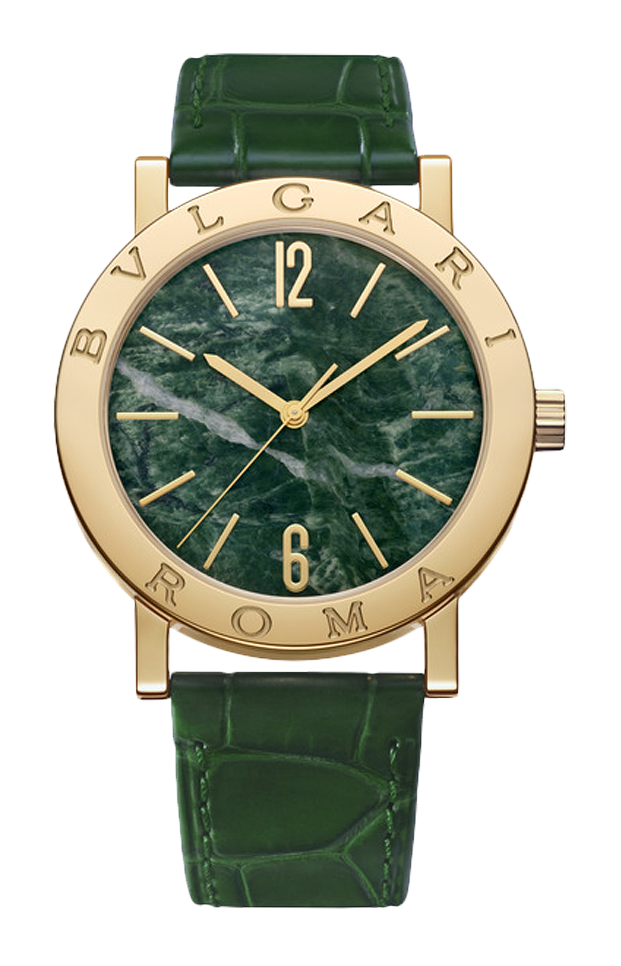 Edizione limitata realizzata in occasione del 50° anniversario dell'iconica collezione, l'orologio BVLGARI BVLGARI con cassa in oro giallo 18 kt è un emblema dell'eccellenza dello stile italiano e dell'audace creatività della maison. Contraddistinto dal celebre doppio logo inciso sulla lunetta, ispirato alle iscrizioni riportate lungo il bordo delle antiche monete romane, il leggendario orologio presenta lo speciale logo BVLGARI ROMA del modello originario. Alimentato da un movimento meccanico a carica automatica, il quadrante in marmo verde Alpi, espressione della maestria di BVLGARI nell'arte della gioielleria, è abbinato a un cinturino in alligatore verde scuro. Un perfetto connubio fra tradizione e modernità, che va oltre ogni epoca e tendenza. Orologio BVLGARI BVLGARI con movimento meccanico di manifattura a carica automatica, funzioni ore e minuti, calibro BVL 191 (spessore 3,80 mm), frequenza 28.800 vph (4 hz) e riserva di carica di 42 ore. Cassa di 38 mm in oro giallo 18 kt e lunetta con logo BVLGARI ROMA, quadrante in marmo verde Alpi, lancette placcate oro giallo, fondello personalizzato con incisione dedicata al 50° anniversario, corona in oro giallo 18 kt, cinturino in alligatore verde scuro con fibbia ad ardiglione in oro giallo 18 kt. Impermeabile fino a 50 metri. Edizione limitata da 150 pezzi.