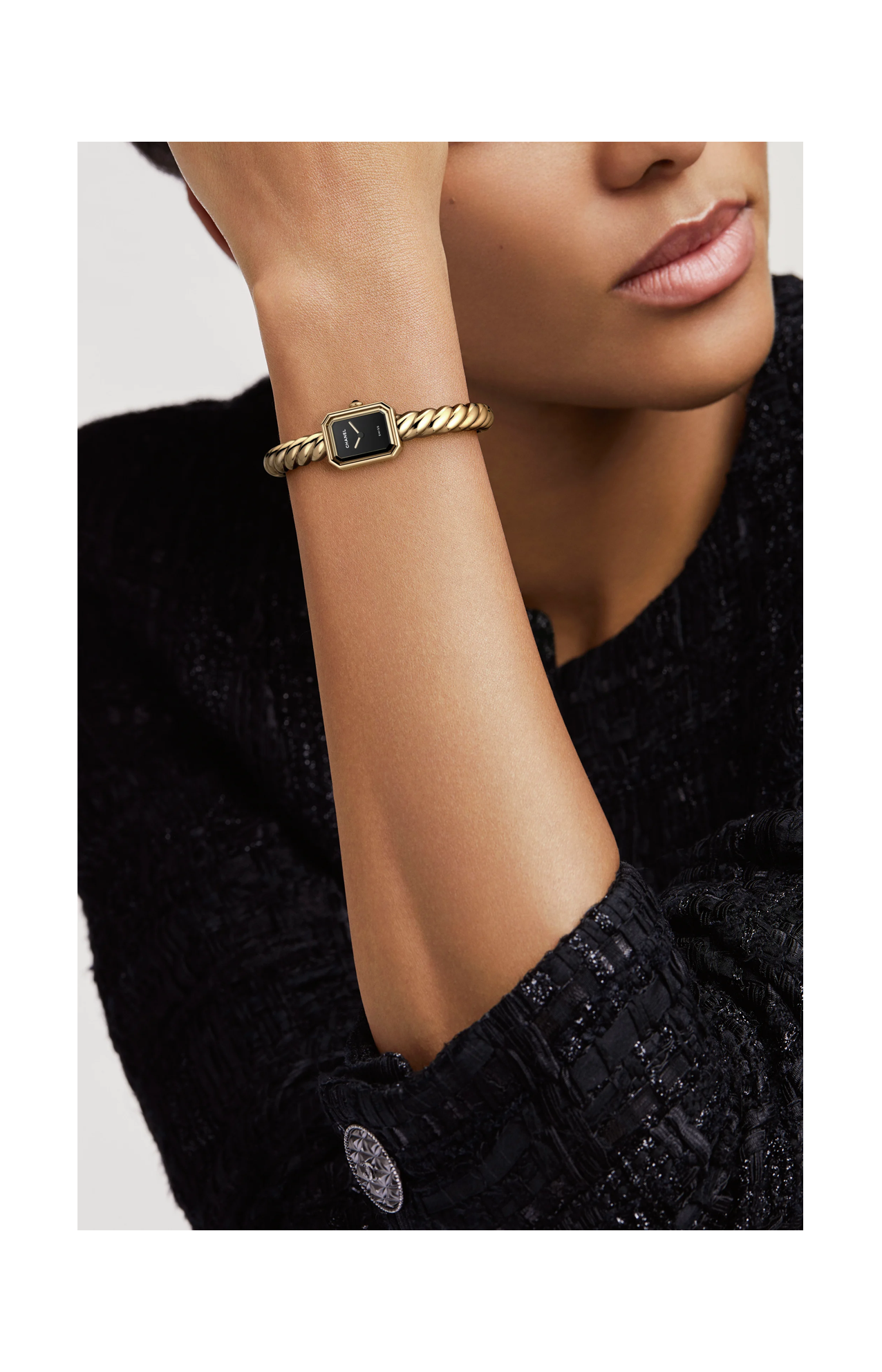 L’orologio CHANEL PREMIÈRE Galon Ref. H11048 è un segnatempo di raffinata eleganza che celebra l’equilibrio perfetto tra stile iconico e dettagli couture, incarnando l’estetica distintiva della Maison CHANEL. La cassa ottagonale, simbolo storicamente ispirato alla geometria del flacone del profumo N°5 e alla pianta della Place Vendôme, è realizzata in oro giallo 18 carati con superfici curate e proporzioni armoniose, esprimendo un design sofisticato e moderno. Il quadrante laccato nero offre un contrasto elegante con una leggibilità chiara e armoniosa delle ore e dei minuti, mentre la semplicità delle linee sottolinea l’eleganza senza tempo. Il movimento al quarzo ad alta precisione garantisce affidabilità quotidiana con minima manutenzione, perfetto per chi desidera un orologio elegante e funzionale. Il bracciale a “galon” in acciaio con dettagli sartoriali ricorda il motivo dei famosi tessuti couture, conferendo all’orologio un tocco unico e distintivo che fonde lusso, stile e comfort. Pensato per chi ama accessori che combinano estetica e personalità, il PREMIÈRE Galon Ref. H11048 è ideale da indossare in ogni occasione, incarnando la visione contemporanea e l’eleganza senza tempo firmata CHANEL.