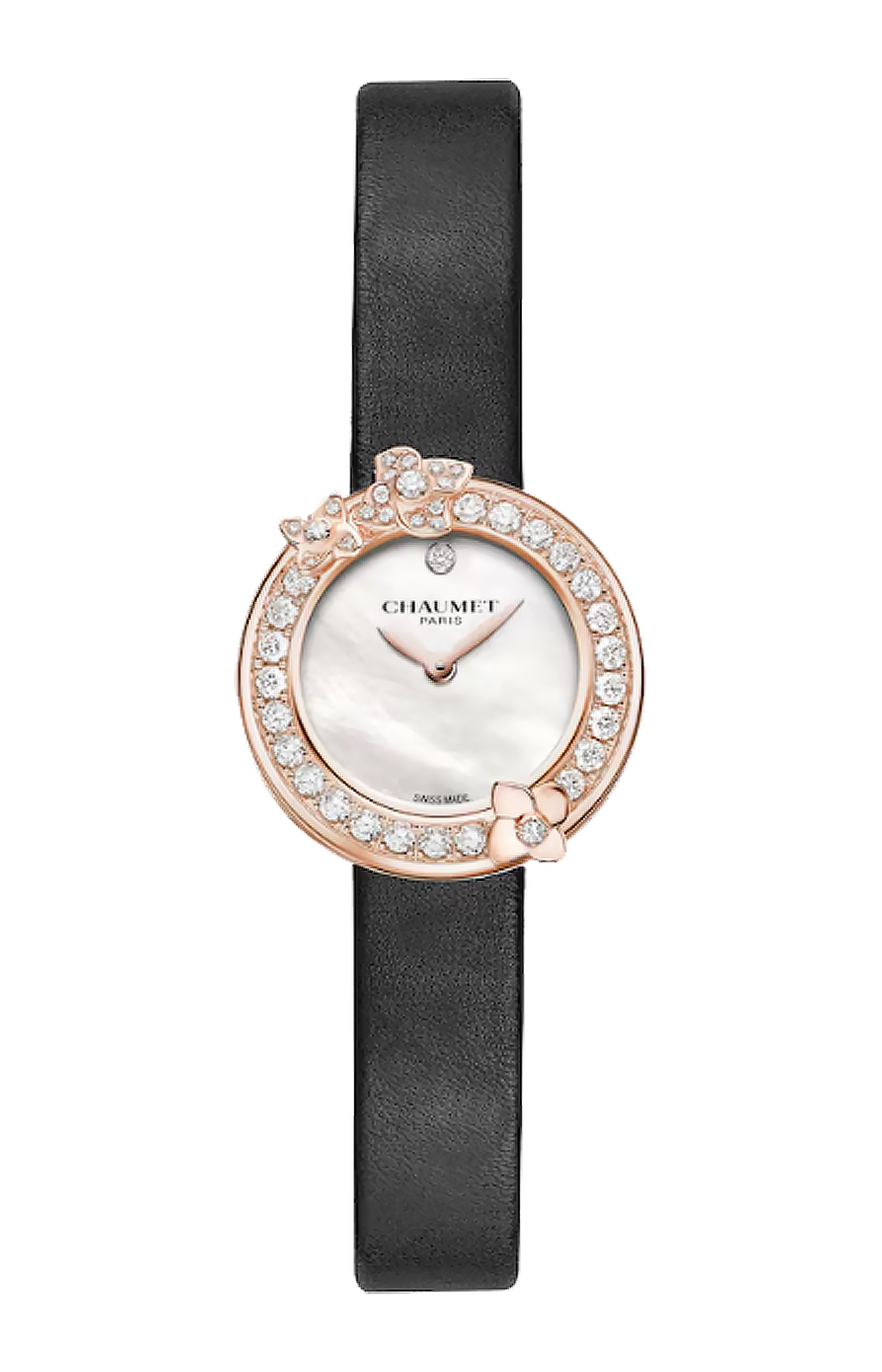 L'orologio Hortensia, disponibile in diverse varianti, è dotato di un nuovo sistema che permette di adattare lo stile dell'orologio ai propri gusti. Con un semplice clic, il cinturino può essere agganciato e sganciato, rivelando un gioiello completamente diverso. Ogni creazione è corredata da un cinturino aggiuntivo a scelta: in pelle per un look casual o in raso per una serata elegante: le possibilità sono infinite. Oltre ai diversi materiali, la scelta di colori è altrettanto ampia, dal verde al rosa al blu navy, per ampliare la gamma di stili. Questa creazione con movimento al quarzo coniuga l'artigianalità svizzera e la raffinatezza parigina.