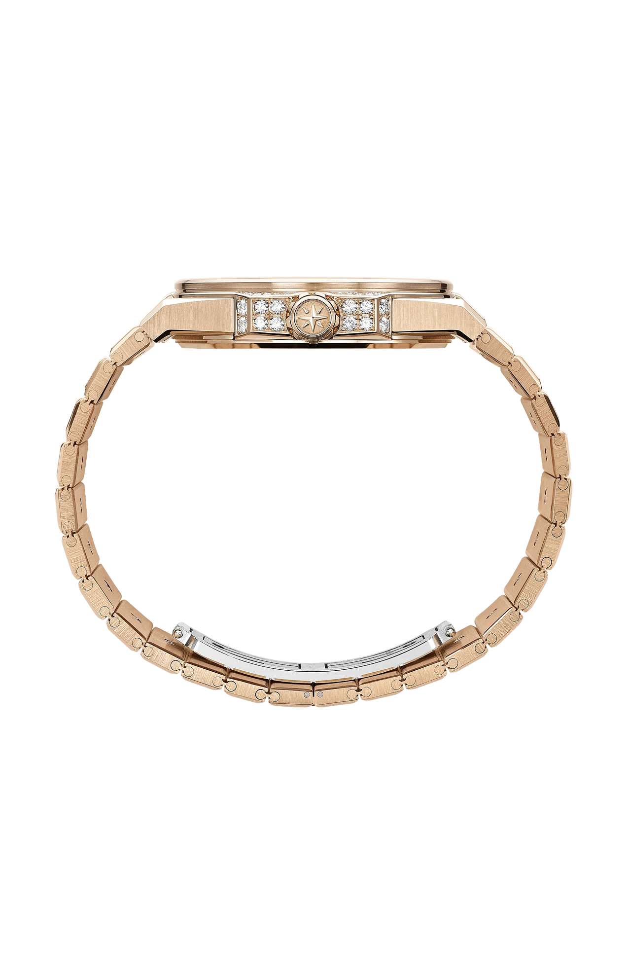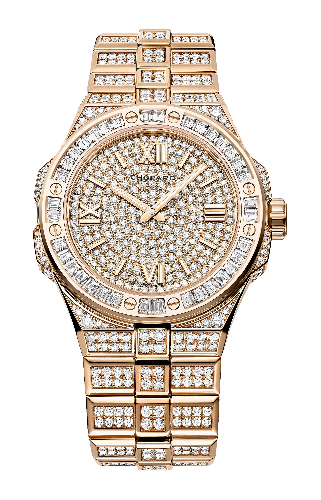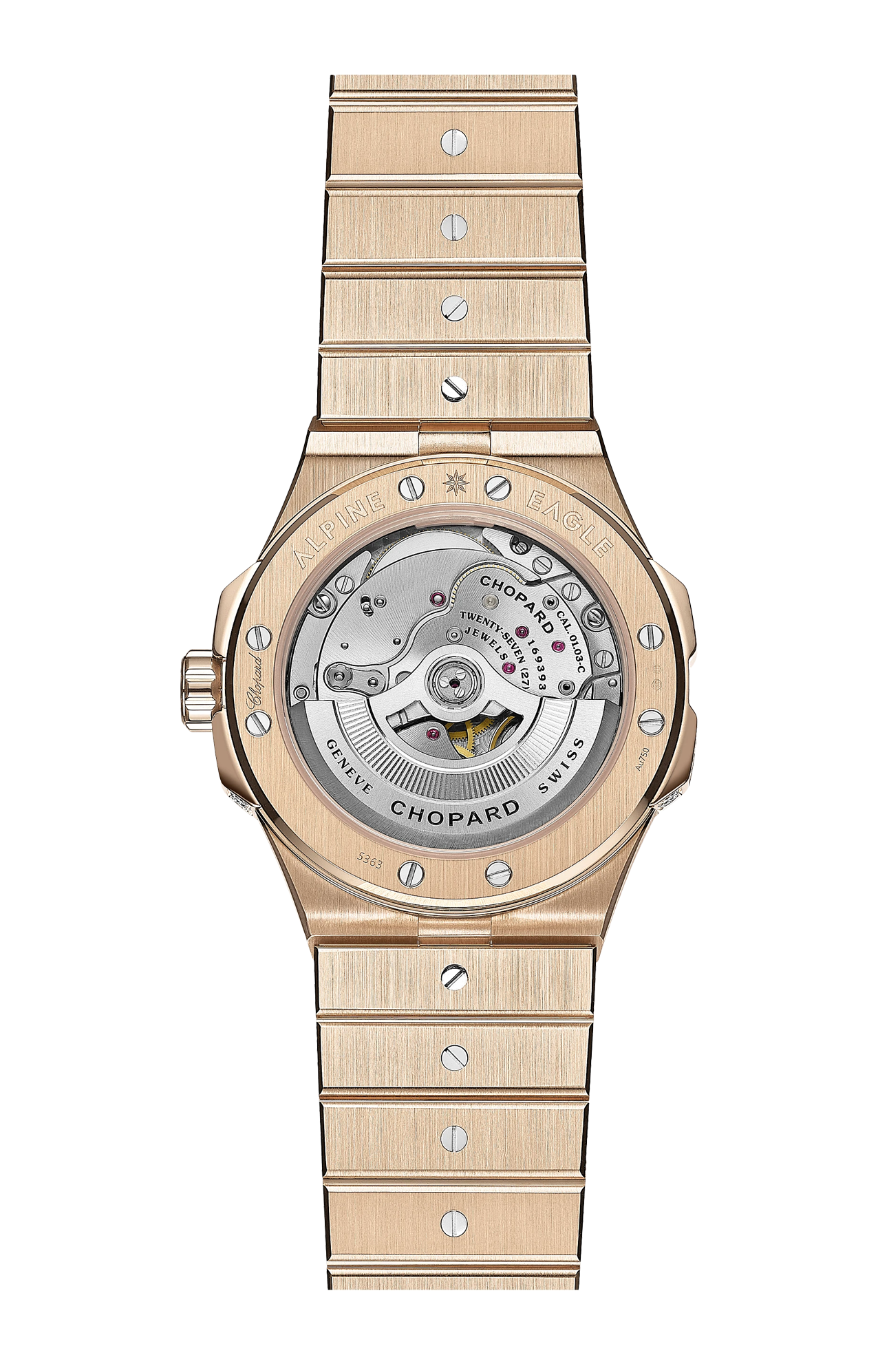 La collezione di orologi sporty-chic di Chopard, ispirata alla grazia dell’aquila e alla maestria delle Alpi, accoglie il segnatempo in oro con diamanti Alpine Eagle Frozen. La cassa di 41 mm di diametro e il bracciale integrato, in oro etico rosa 18 carati, sono interamente ricoperti di un pavé di diamanti taglio brillante, mentre sulla lunetta scintillano i diamanti taglio trapezio. Questa versione gioiello dell’orologio dedicato alle “aquile contemporanee”, la cui perizia tecnica è pari solo alla raffinatezza estetica, ospita il movimento Chopard 01.03-C a carica automatica con 60 ore di riserva di carica. Grazie alla ricchezza dei suoi diamanti che ricordano i delicati cristalli di neve sulle cime delle Alpi, questo lussuoso orologio di diamanti scintilla di un’aura etica e responsabile.