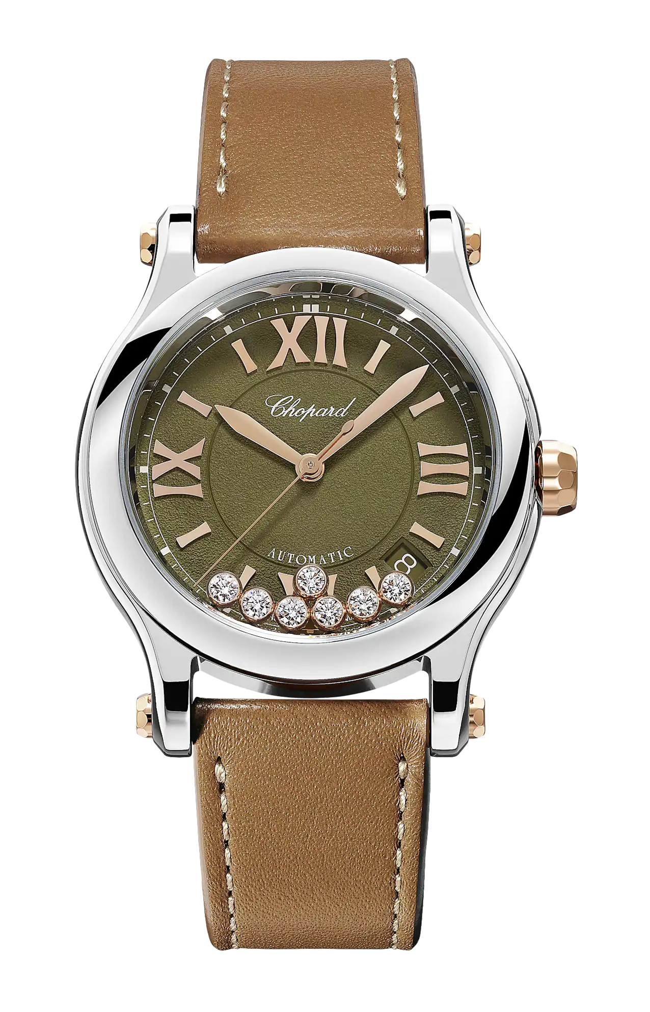 Happy sport 33 mm, automatico, oro rosa etico, lucent steel™, diamanti - 278573