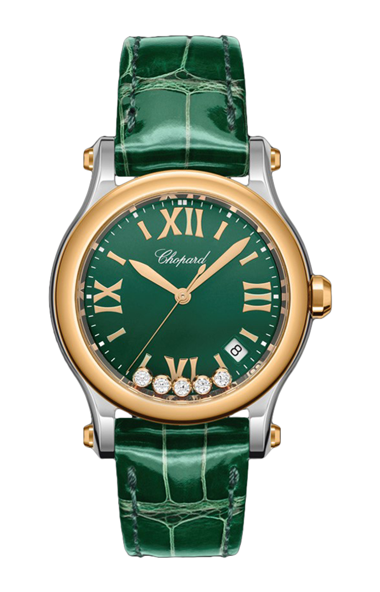 La collezione Happy Sport è l'emblema della creatività e dell'audacia di Chopard. Le sue gioiose pietre preziose, che danzano liberamente tra due vetri zaffiro, fanno sognare sin dal 1993, quando Chopard è diventata la prima maison a coniugare acciaio e diamanti. Little Diamonds Do Great Things.