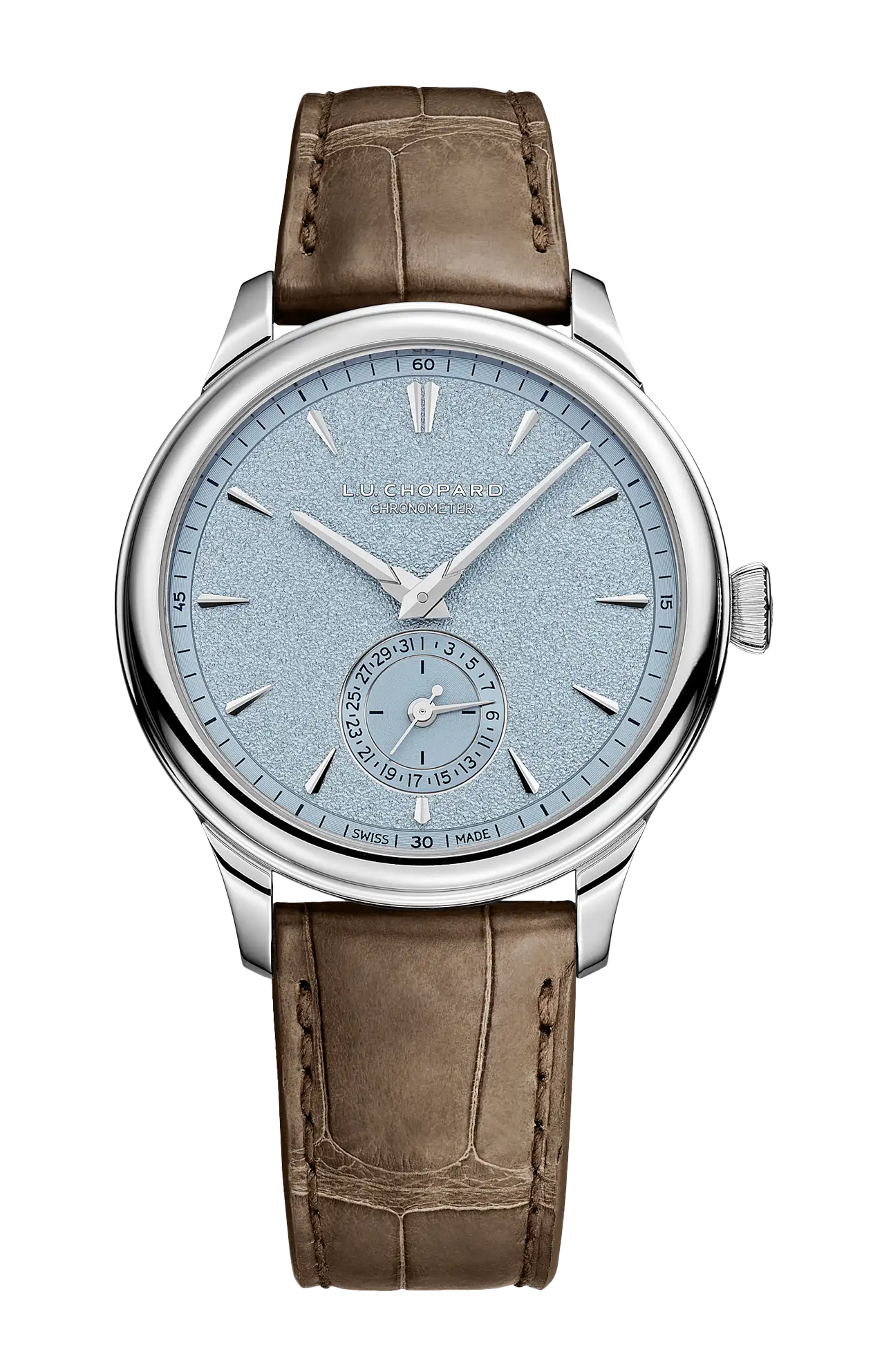 A distanza di un quarto di secolo dal lancio del primo segnatempo L.U.C Quattro, nel 2000, la manifattura Chopard celebra il 25° anniversario del suo movimento Quattro presentando una nuovissima edizione in platino, con cassa da 39 millimetri rimodellata in linea con la nuova estetica L.U.C. Importante innovazione nel campo dell'alta orologeria, l'esclusiva tecnologia Chopard Quattro ha fatto guadagnare notevoli riconoscimenti alla collezione L.U.C grazie al primo calibro animato da quattro bariletti collegati in serie e montati in due coppie verticali, che contengono esattamente 1,885 metri di molle. Questa configurazione - unica nel suo genere al mondo – consente di fornire allo scappamento un'eccezionale riserva di carica totale di 216 ore (9 giorni) con una forza costante. La regolarità dell'operazione è assicurata da un bilanciere che oscilla a una frequenza di 28.800 alternanze all'ora, una garanzia di precisione impeccabile certificata cronometricamente dal COSC. Il riconoscimento del marchio di qualità "Poinçon de Genève" conferma la raffinatezza di questo segnatempo L.U.C Quattro sia dal punto di vista tecnico che estetico.
