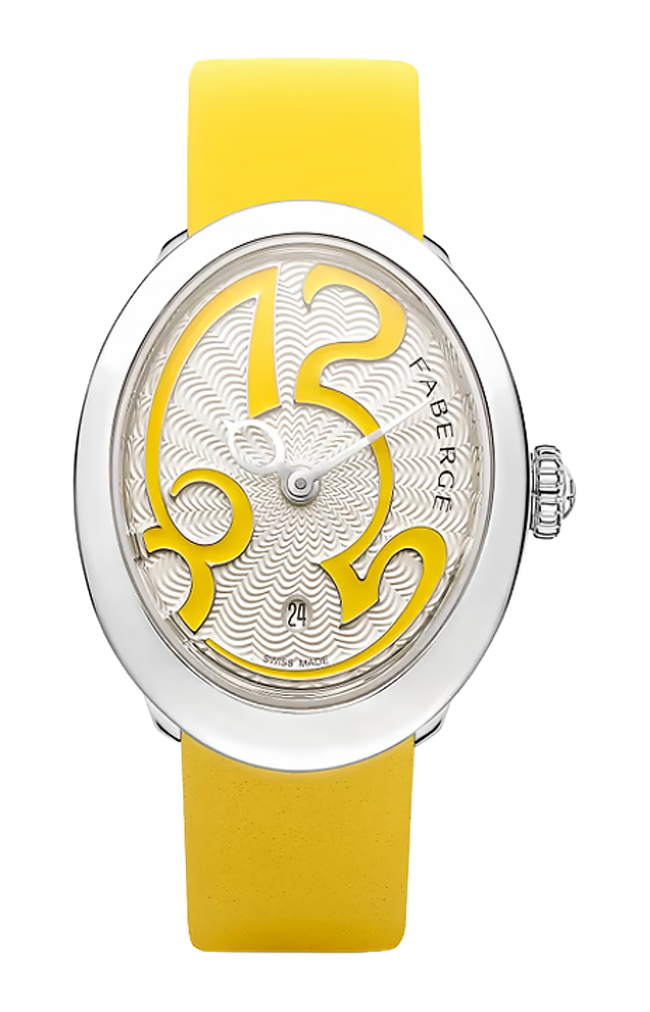 Fabergé ha introdotto gli orologi Eggsistence nella sua collezione Colours of Love , che celebra "Una vita a colori" attraverso l'uso di straordinarie pietre preziose colorate, colmando il divario tra gioielleria e orologi. Ispirata al simbolo più rappresentativo della Maison, l'uovo, questa nuova e giocosa collezione di orologi racchiude 180 anni di storia in un design contemporaneo, incarnando il fascino senza tempo di Fabergé . La cassa è caratterizzata da delicate scanalature sui lati, elemento distintivo della nostra collezione Colours of Love , e da numeri incastonati di diamanti, che consentono ai numeri di brillare e catturare la luce attraverso le diverse sfaccettature delle pietre preziose.