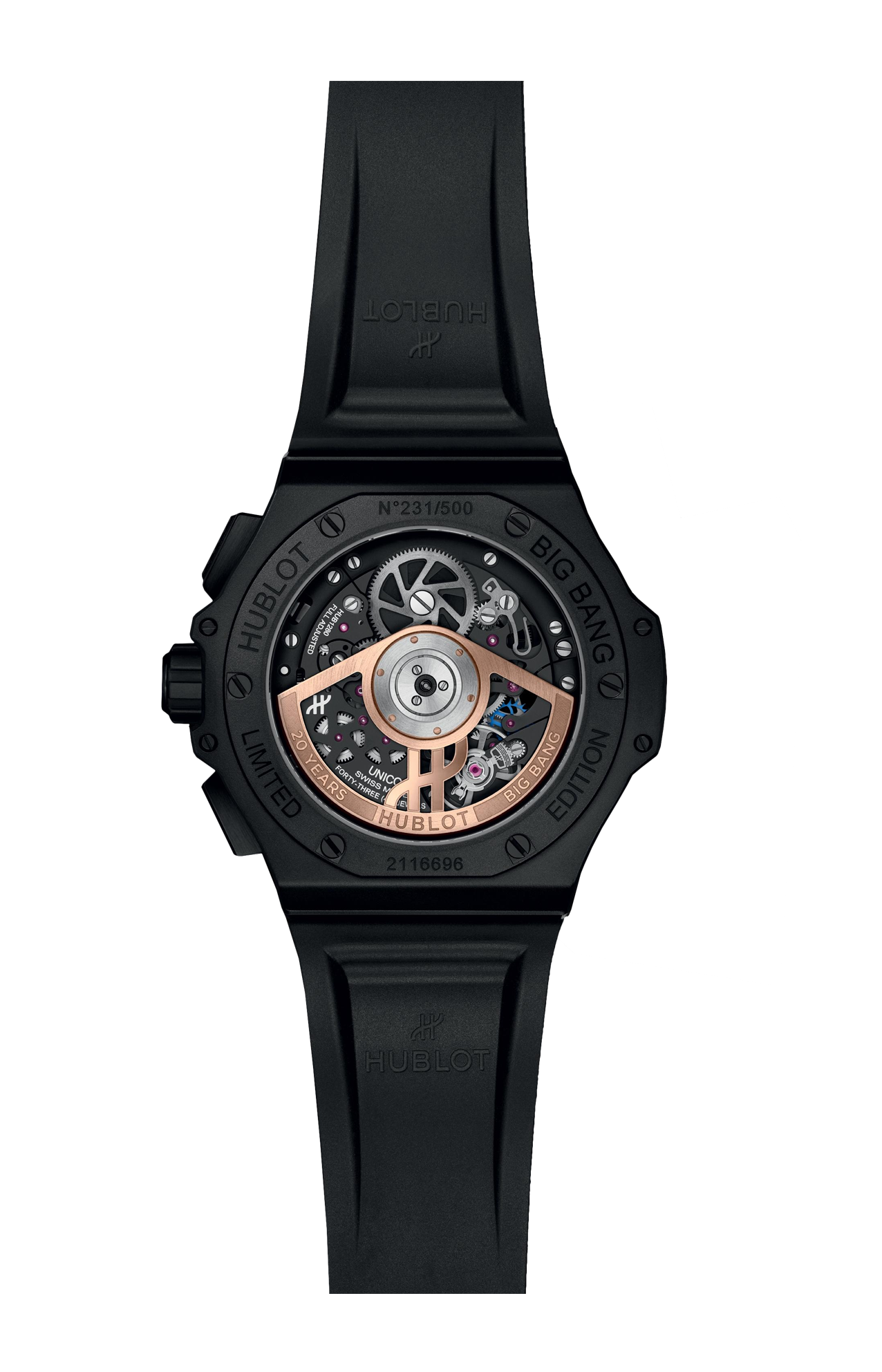 Limitato a 500 pezzi, il Big Bang All Black è la pura incarnazione dello spirito innovativo e all'avanguardia del marchio. Una dichiarazione di stile radicale racchiusa in una cassa in ceramica nera, è la perfetta alchimia di leggerezza e solidità. Ogni minimo dettaglio è stato accuratamente curato per contribuire all'estetica essenziale. La decisa palette monocromatica accentua l'atmosfera misteriosa e contemporanea, creando al contempo un'armoniosa ed emozionante resa visiva.