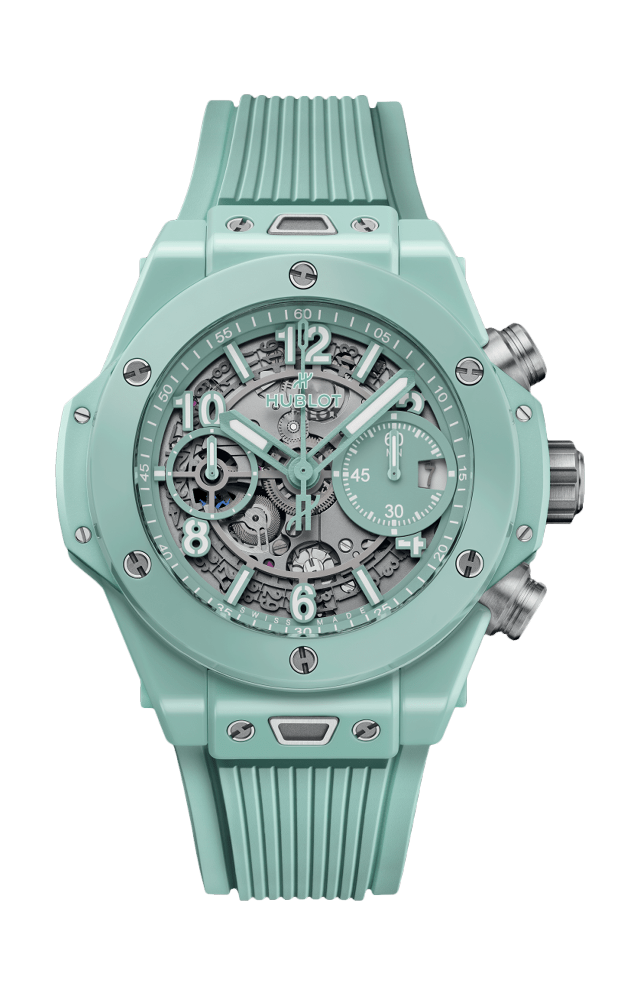 Per Hublot, i materiali sono parte integrante del design dei suoi orologi. Devono completarene il design, proteggendone al contempo il meccanismo e resistendo alla prova del tempo. Per questo motivo, la manifattura ha scelto di utilizzare la ceramica high-tech per alcune lunette e casse; si tratta di un materiale ultraresistente e quasi completamente antigraffio (a parte il diamante), con una base di zirconio sinterizzato ad altissime temperature.