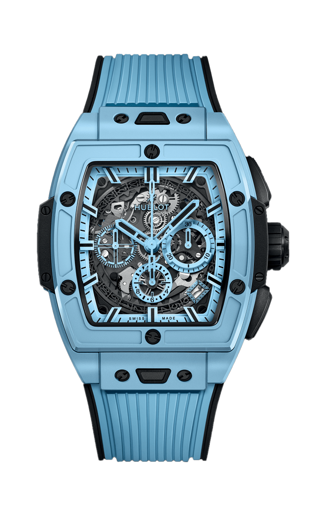 Per Hublot, i materiali sono parte integrante del design dei suoi orologi. Devono completare il loro design, proteggendo al tempo stesso il loro meccanismo e resistendo alla prova del tempo. Pertanto, la manifattura ha scelto di utilizzare la ceramica high-tech per alcune lunette e casse; è un materiale ultra resistente e quasi interamente antigraffio (a parte il diamante) a base di zirconio sinterizzato ad altissime temperature. Edizione limitata di 200 pezzi.