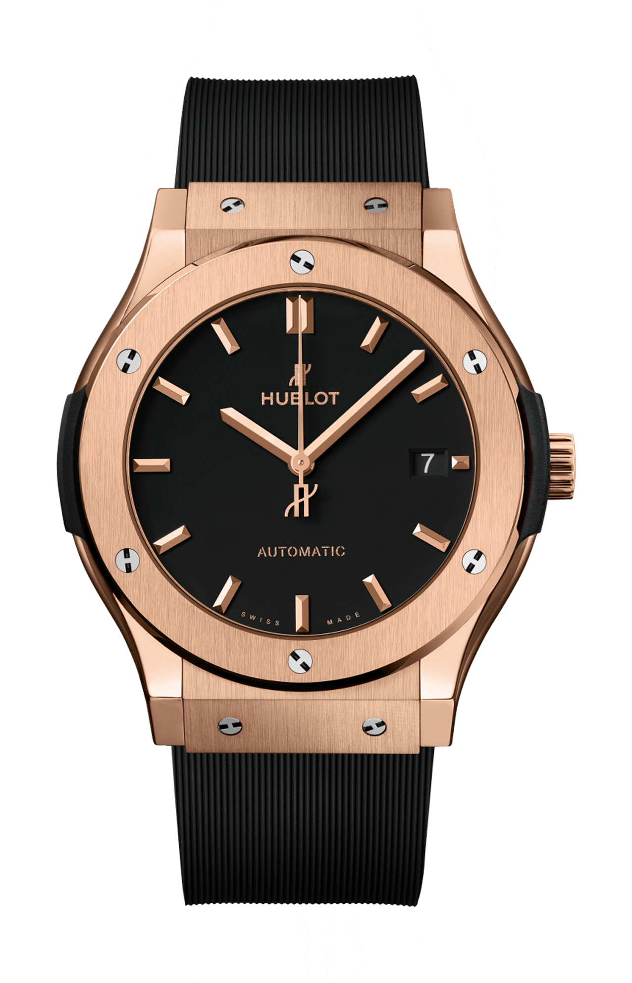 L’Hublot Classic Fusion King Gold 45 mm è un segnatempo che combina l’eleganza senza tempo con la modernità tecnica propria della Maison: la cassa da 45 mm in King Gold 18 K, una lega esclusiva di oro rosa sviluppata da Hublot con una tonalità più calda e profonda rispetto all’oro tradizionale, conferisce un’immediata presenza al polso, mentre la lunetta spazzolata con viti esagonali iconiche aggiunge carattere e identità. Il quadrante minimalista, con finitura satinata soleil e indici applicati, offre un’estetica pulita e raffinata che esalta leggibilità e stile, mentre le lancette lucide scivolano con precisione su ore, minuti e secondi centrali. Il vetro zaffiro antigraffio con trattamento antiriflesso protegge il cuore dell’orologio, garantendo visibilità ottimale in ogni condizione di luce. All’interno pulsa un movimento automatico di alta qualità che assicura affidabilità quotidiana e prestazioni costanti, unendo comfort e tecnologia. Il cinturino in caucciù nero con inserto in pelle di vitello e fibbia deployante in oro King Gold combina comfort e versatilità, adattandosi perfettamente allo stile personale di chi lo indossa. Questo modello rappresenta l’equilibrio ideale tra lusso discreto e design contemporaneo, pensato per chi cerca un orologio elegante, confortevole e di forte personalità, perfetto tanto negli ambienti formali quanto nelle occasioni più sofisticate.