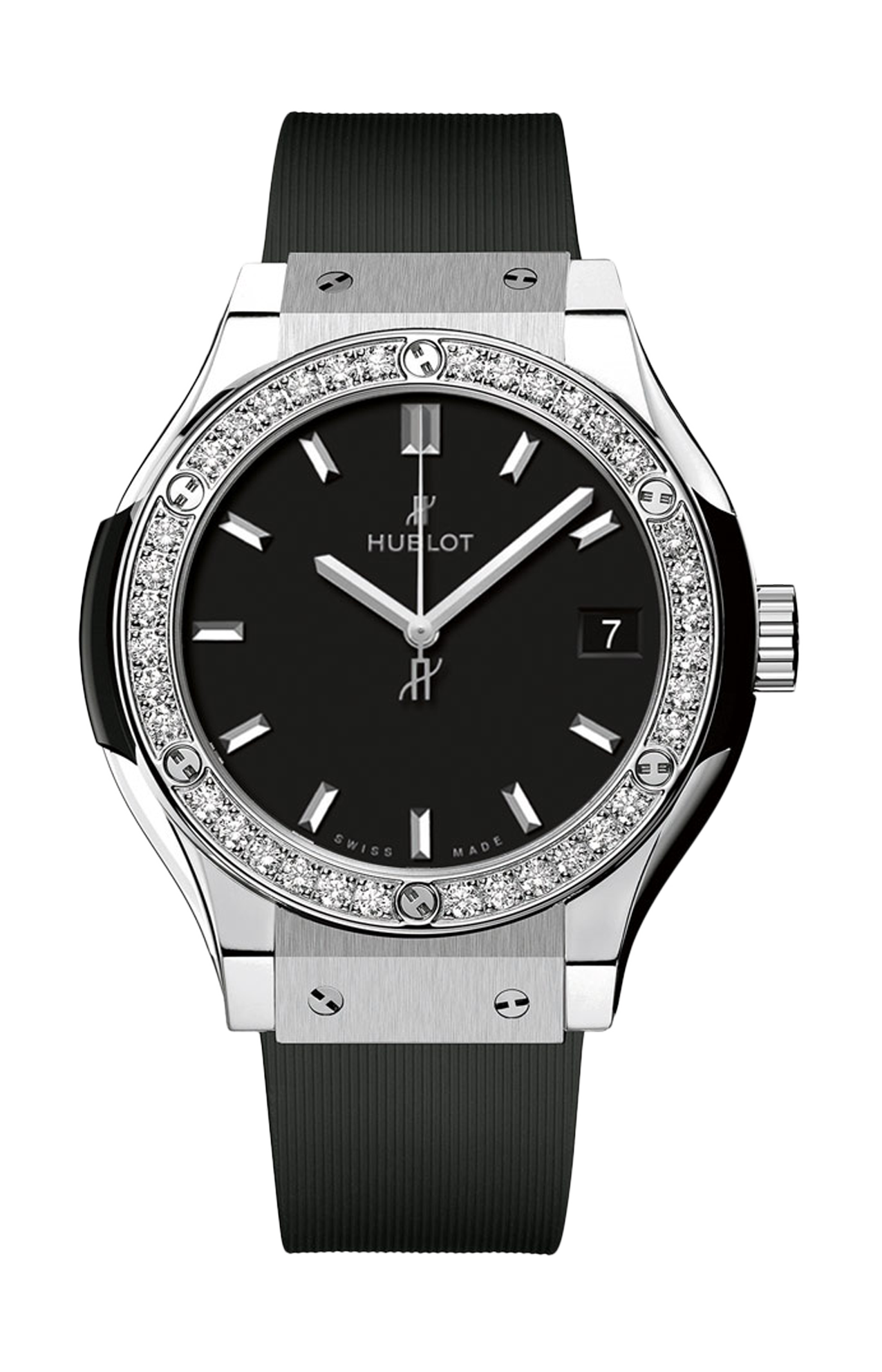 Il titanio è ampiamente utilizzato da Hublot, in particolare per la sua leggerezza. Presenta il miglior rapporto tra resistenza e peso tra tutti i materiali, il che lo rende un materiale estremamente popolare soprattutto in ambito aeronautico. Si distingue anche per la sua resistenza alla corrosione e la sua inerzia a contatto con la pelle. Hublot utilizza esclusivamente titanio di alta qualità, grado 5, il più resistente in assoluto. Una volta lucidato, questo materiale conserva una lucentezza metallica leggermente bluastra.