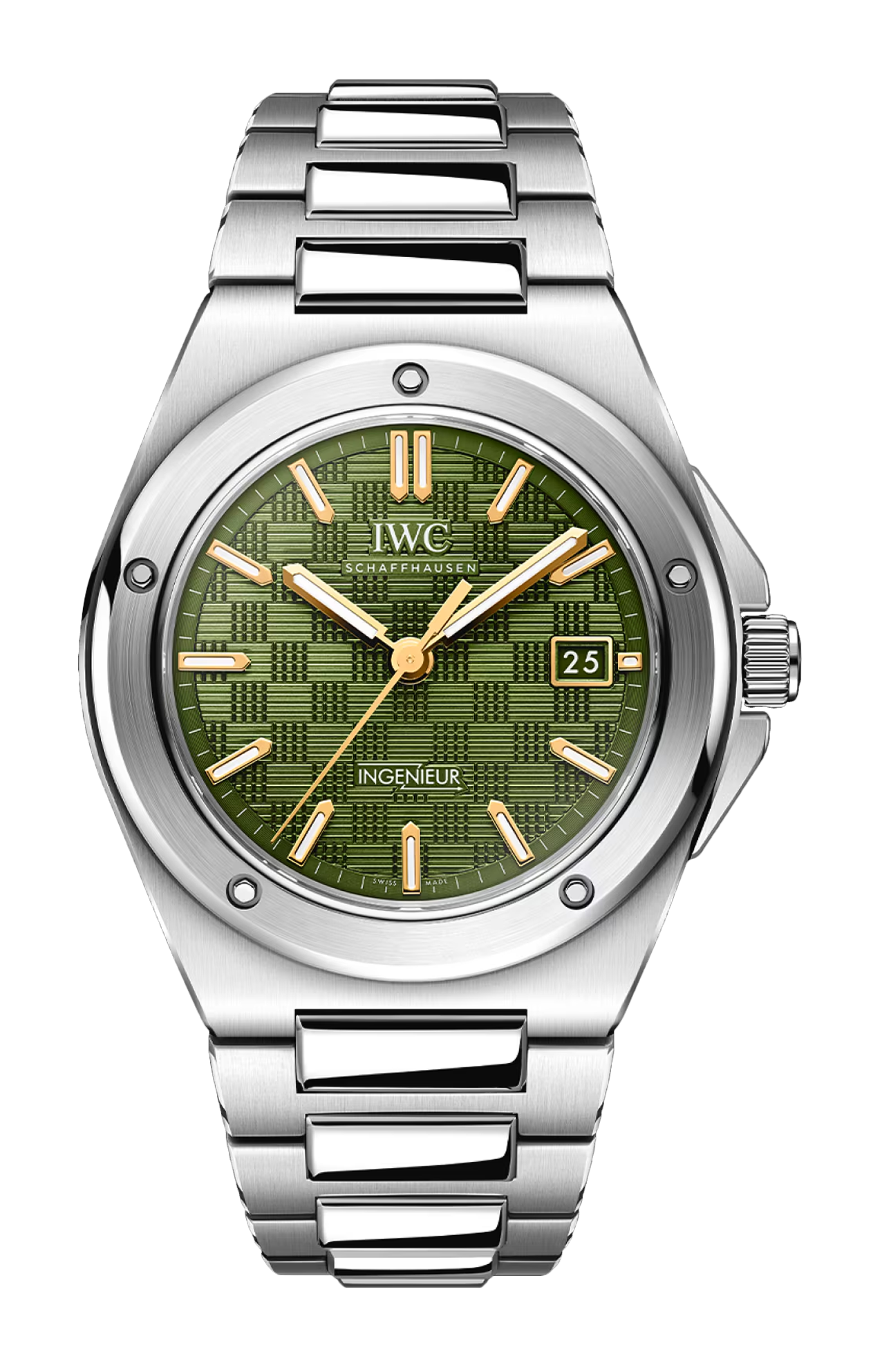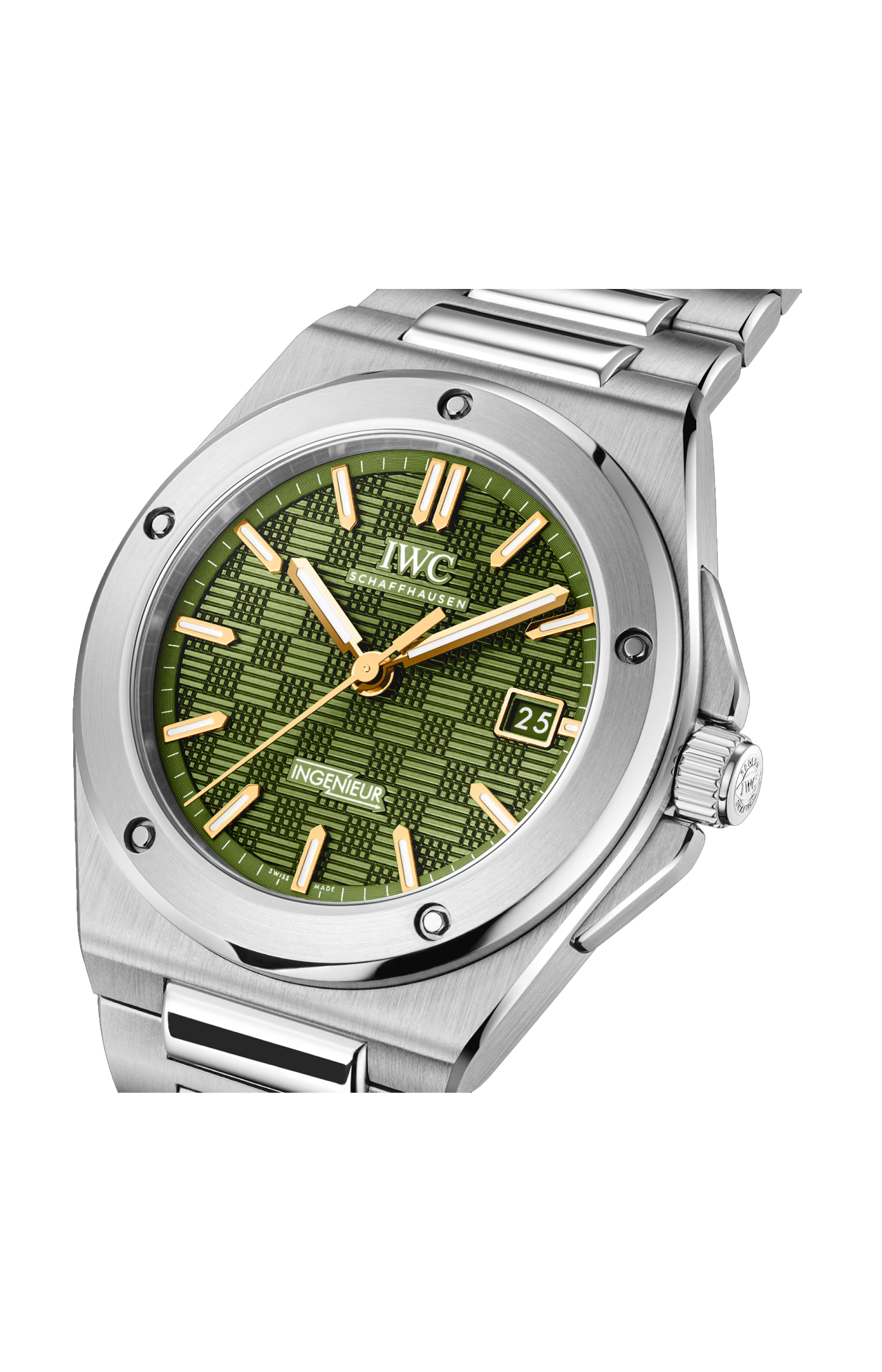 Uno dei personaggi principali del film “F1®” prodotto da Apple TV+ è Sonny Hayes, un ex pilota che ritorna in Formula Uno™ insieme al suo giovane compagno di squadra Joshua Pearce. Nel film, Sonny Hayes indossa un orologio su misura basato sullo storico Ingenieur SL, referenza 1832, con un sorprendente quadrante nella sua caratteristica tonalità di verde. Questo orologio di scena è servito da ispirazione per un’edizione speciale dell’Ingenieur. Limitato a 1000 esemplari, l’Ingenieur Automatic 40 con cassa e bracciale in acciaio presenta un quadrante verde con motivo “a griglia” e indici applicati in oro, una combinazione di colori simile a quella indossata da Sonny Hayes nel film. Le lancette dorate e gli indici metallici rivestiti d’oro sono riempiti con Super-Luminova®, per garantire una perfetta leggibilità in tutte le condizioni di luce. Un tratto distintivo del design dell’Ingenieur è la caratteristica lunetta, fissata alla ghiera con cinque viti funzionali. Offrendo un comfort eccezionale, il bracciale integrato con fibbia déployante butterfly si aggancia alla cassa tramite le maglie centrali. L’Ingenieur Automatic 40 è animato dal calibro di manifattura IWC 32111 con riserva di carica di 120 ore e impermeabilità fino a 10 bar. In linea con la tradizione dell’Ingenieur, la cassa interna in ferro dolce protegge efficacemente il movimento dagli effetti dei campi magnetici.