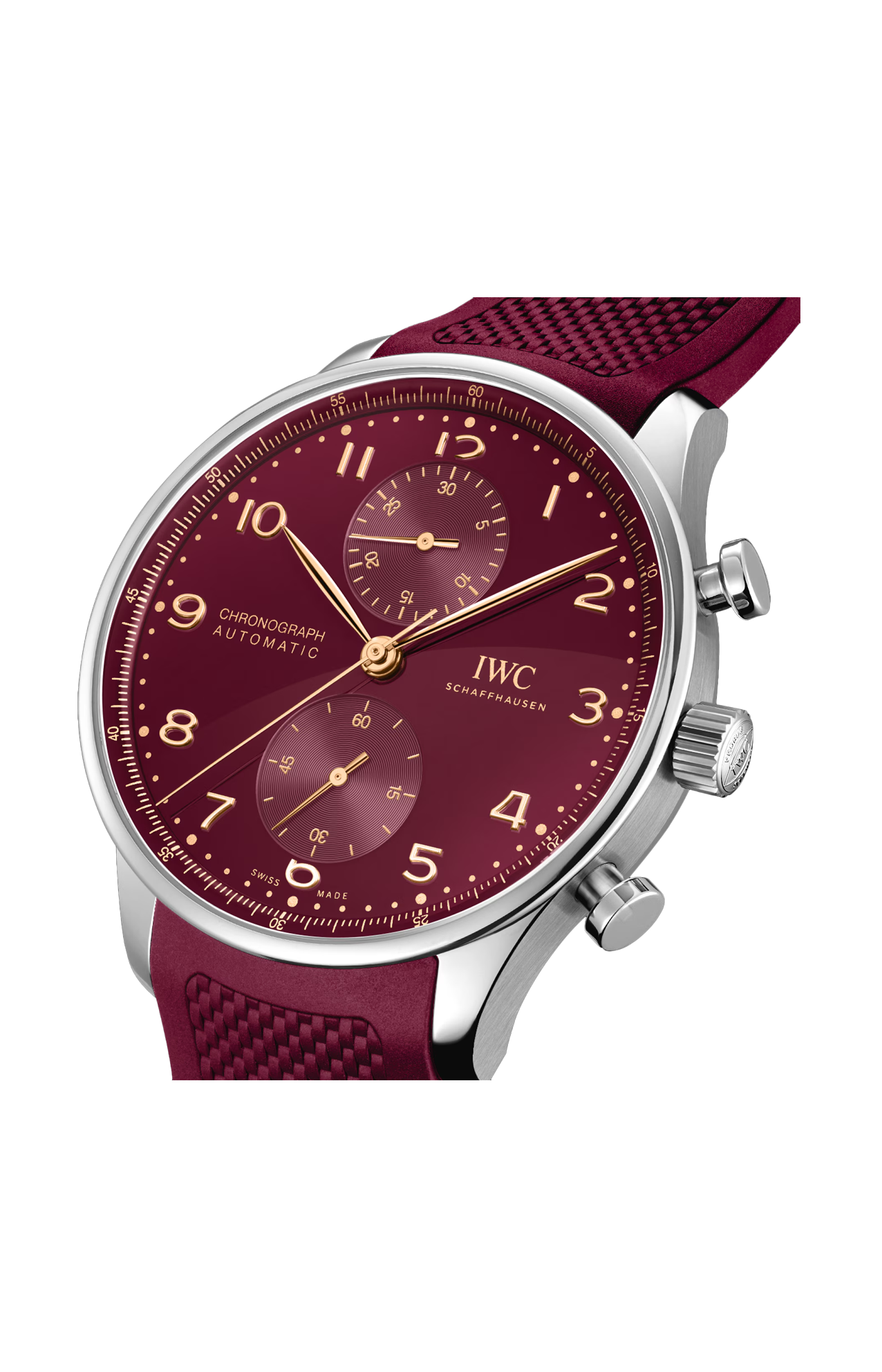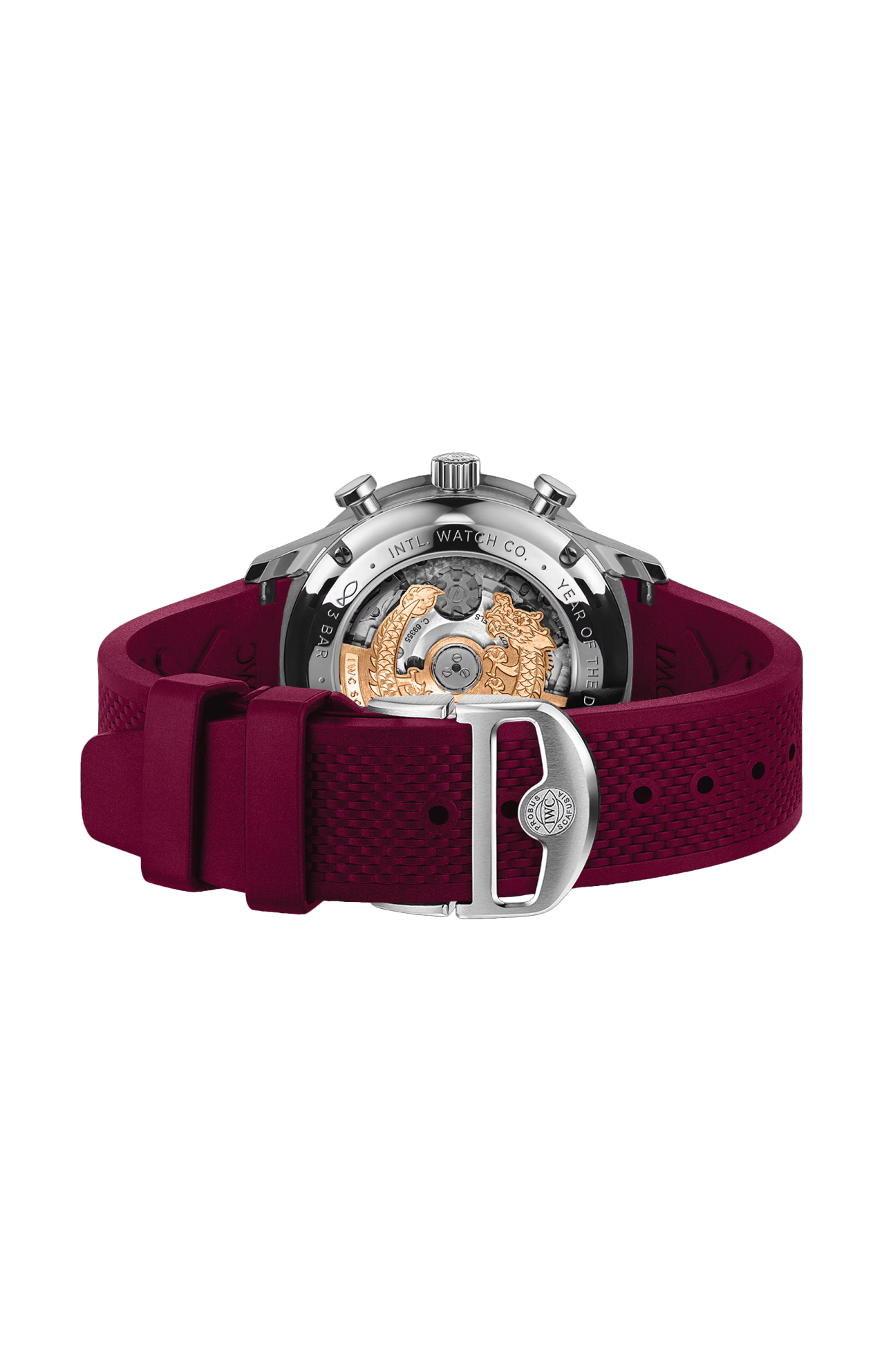 IWC Schaffhausen saluta il nuovo anno del drago di legno con un segnatempo in edizione speciale limitata a 1000 esemplari. Caratterizzato da una cassa ergonomica da 41 millimetri in acciaio con splendide finiture, il Portugieser Chronograph colpisce per lo straordinario quadrante bordeaux con lancette e indici applicati dorati. Il bordeaux è un'incantevole tonalità di rosso, che simboleggia il colore vivace del fuoco, tradizionalmente usato per dare il benvenuto al nuovo anno in Cina. Il rosso rappresenta longevità, felicità, successo e fortuna. Il cronografo consente di effettuare misurazioni precise fino a 30 minuti e mostra i minuti cronografici in un contatore a ore 12 per una facile leggibilità. Osservando il calibro 69355 di manifattura IWC attraverso il fondello in vetro zaffiro, è possibile ammirare la grande attrazione di questa edizione speciale: la massa oscillante dorata a forma di drago. Il sistema di ricarica automatica converte in modo efficiente i movimenti del polso di chi indossa l’orologio in energia per la molla motrice e accumula una riserva di carica di 46 ore. L’anello del fondello reca incisa la dicitura “2024 Year of the Dragon”. Questa edizione speciale è corredata da due cinturini: uno in pelle di vitello nera e uno in caucciù bordeaux, che consentono di creare due look diversi. La fibbia déployante ergonomica butterfly garantisce un comfort impareggiabile al polso.