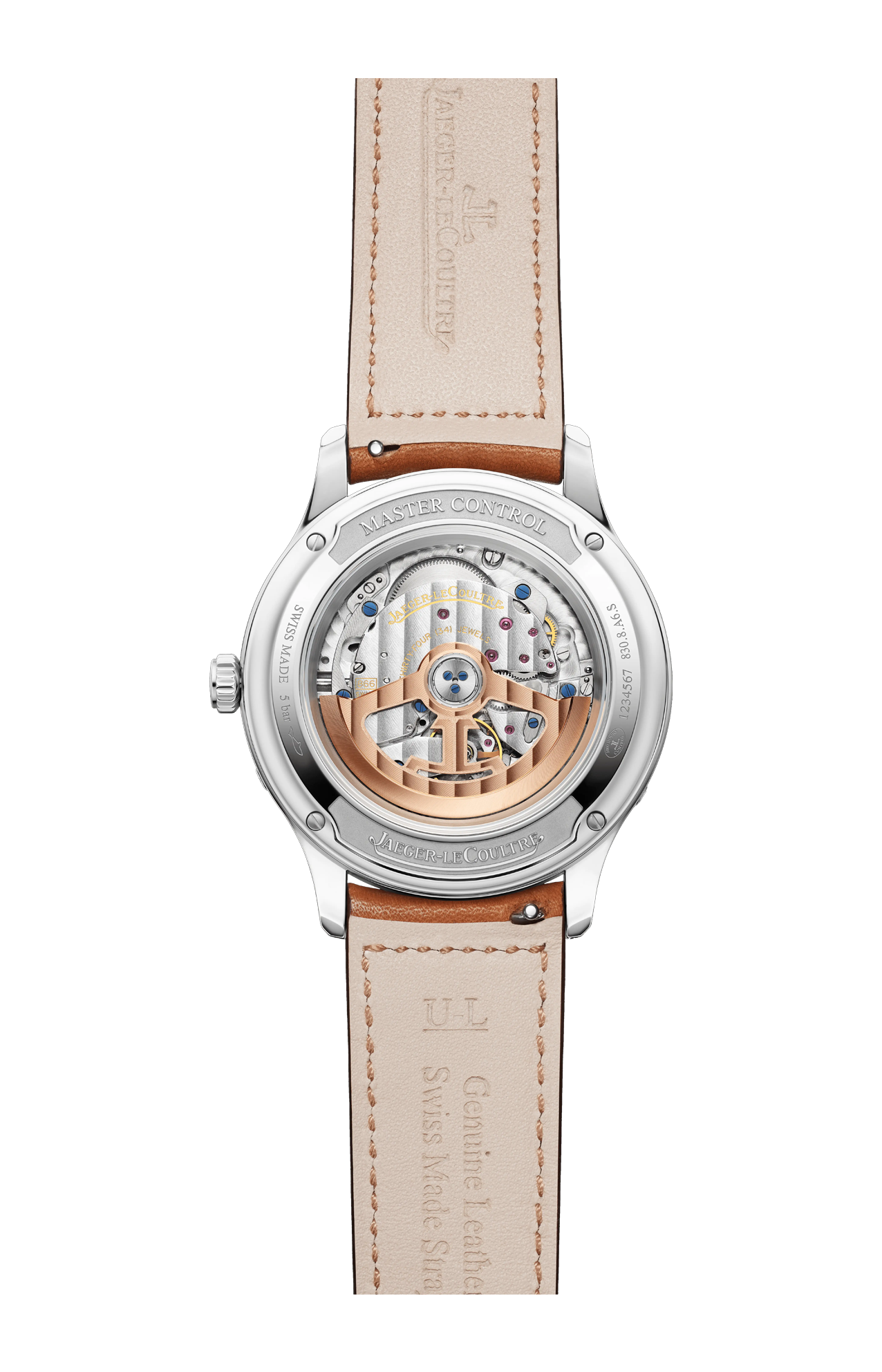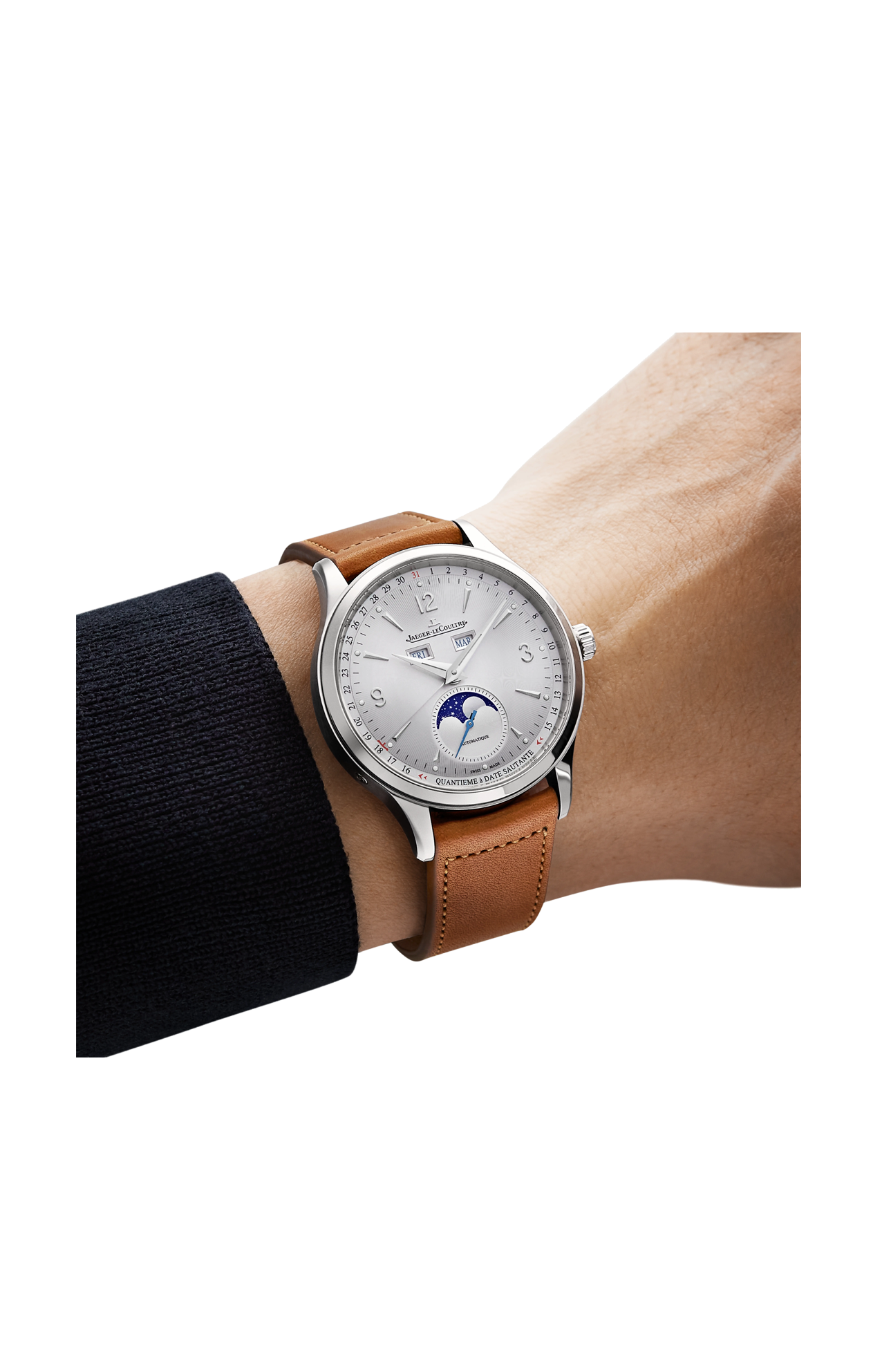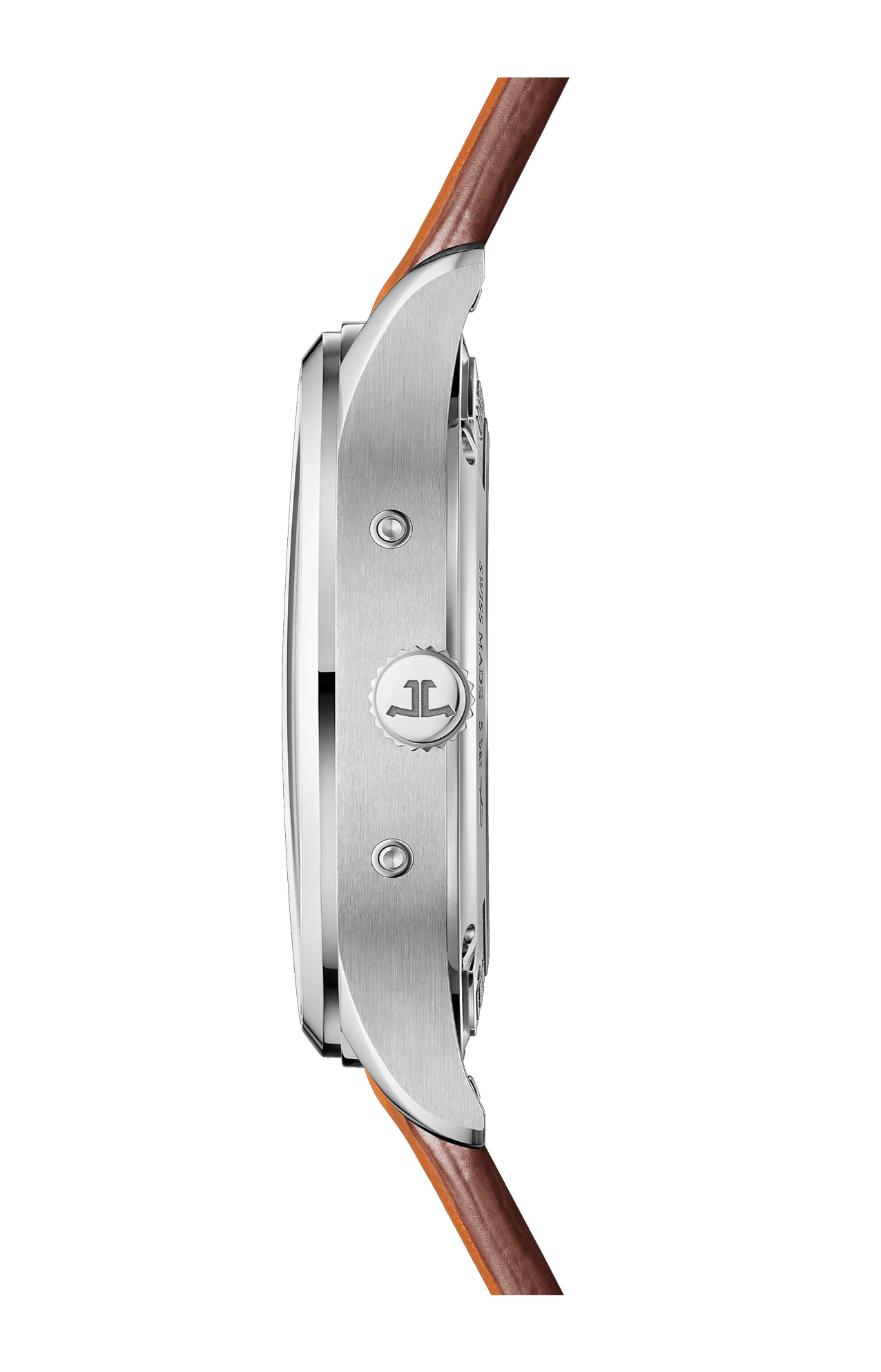 Con il nuovo Master Control Calendar, le fasi lunari offrono una complicazione orologiera: la data saltante, che vola tra il 15° e il 16° giorno del mese. Novità assoluta della collezione Master Control, questo meccanismo permette di non perdere mai di vista le fasi lunari, situate in un’apertura a ore 6. Nella versione in acciaio inossidabile, perfettamente abbinata al quadrante argentato a raggi di sole, il Master Control Calendar offre un calendario completo. Sotto il fondo in vetro zaffiro, il retro dell’orologio rivela i componenti del suo calibro di nuova generazione, che promette una riserva di carica di 70 ore.