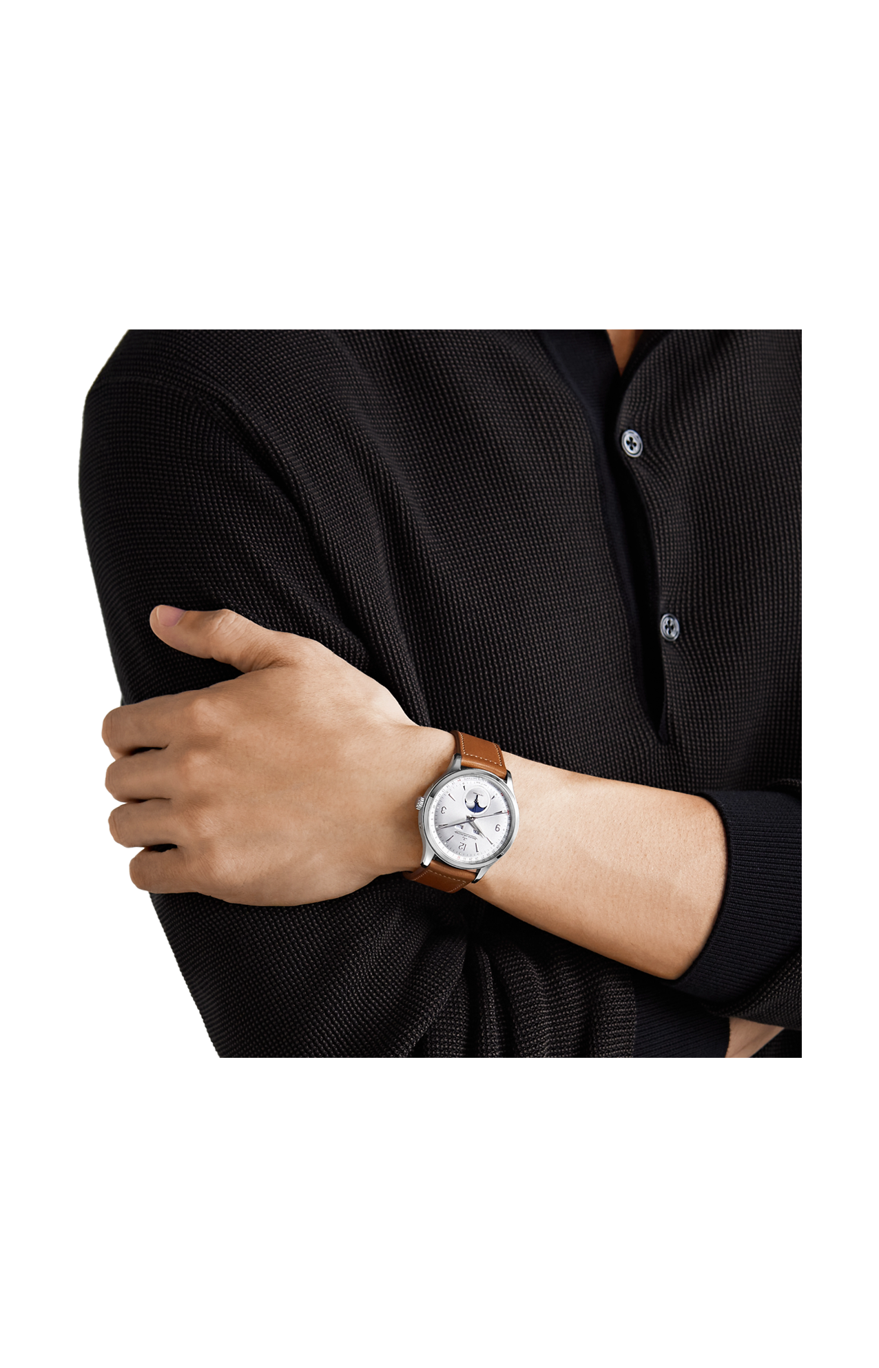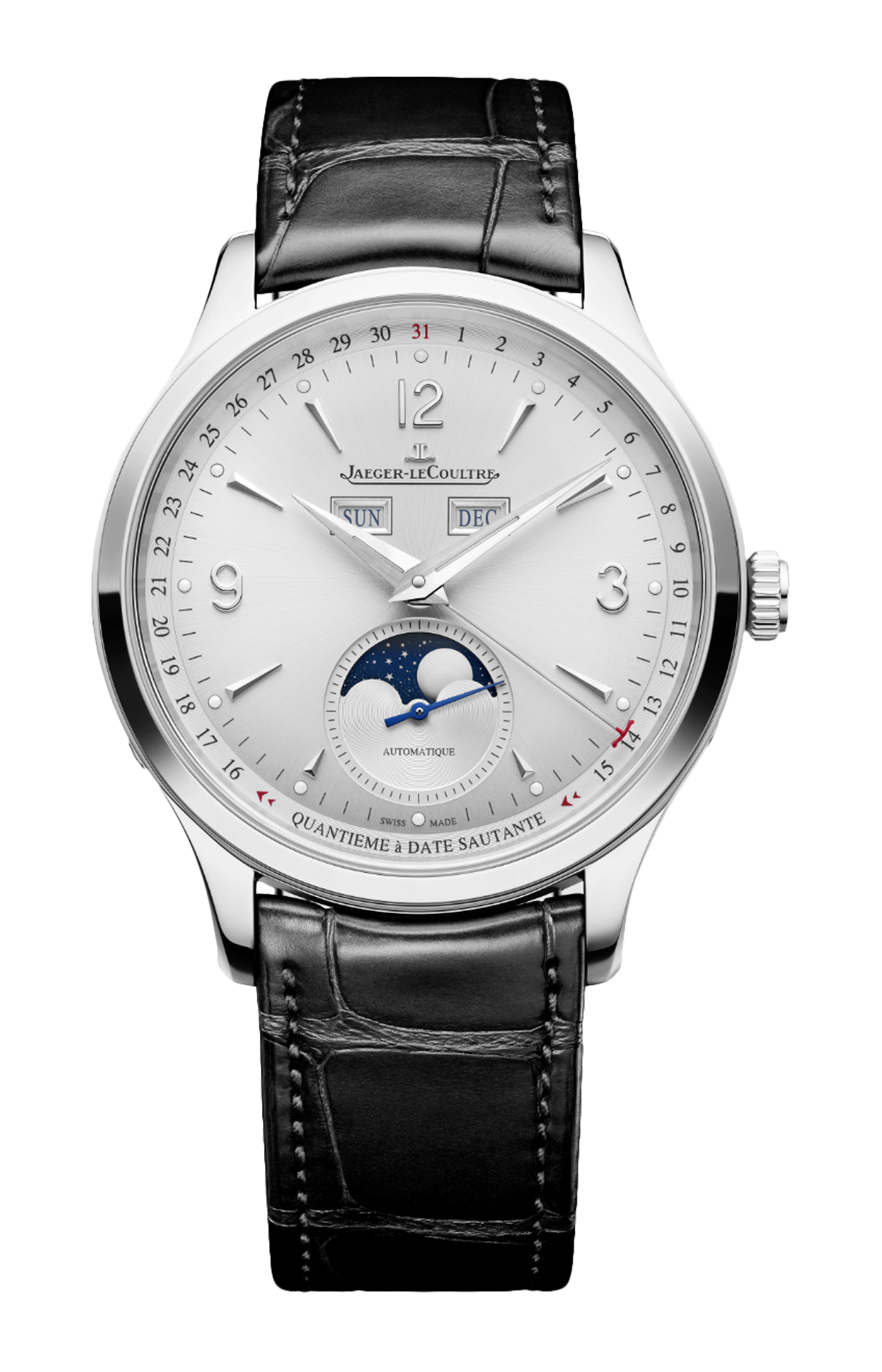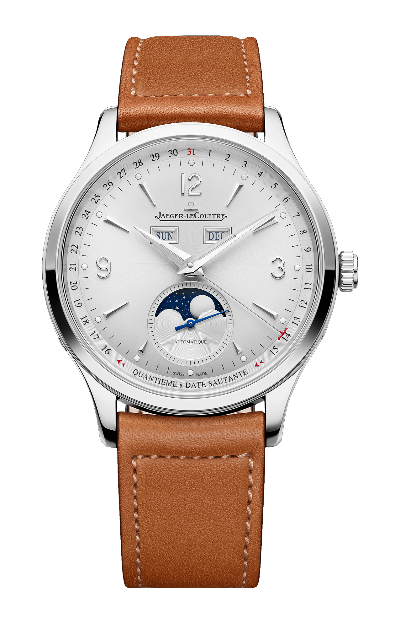 Con il nuovo Master Control Calendar, le fasi lunari offrono una complicazione orologiera: la data saltante, che vola tra il 15° e il 16° giorno del mese. Novità assoluta della collezione Master Control, questo meccanismo permette di non perdere mai di vista le fasi lunari, situate in un’apertura a ore 6. Nella versione in acciaio inossidabile, perfettamente abbinata al quadrante argentato a raggi di sole, il Master Control Calendar offre un calendario completo. Sotto il fondo in vetro zaffiro, il retro dell’orologio rivela i componenti del suo calibro di nuova generazione, che promette una riserva di carica di 70 ore.