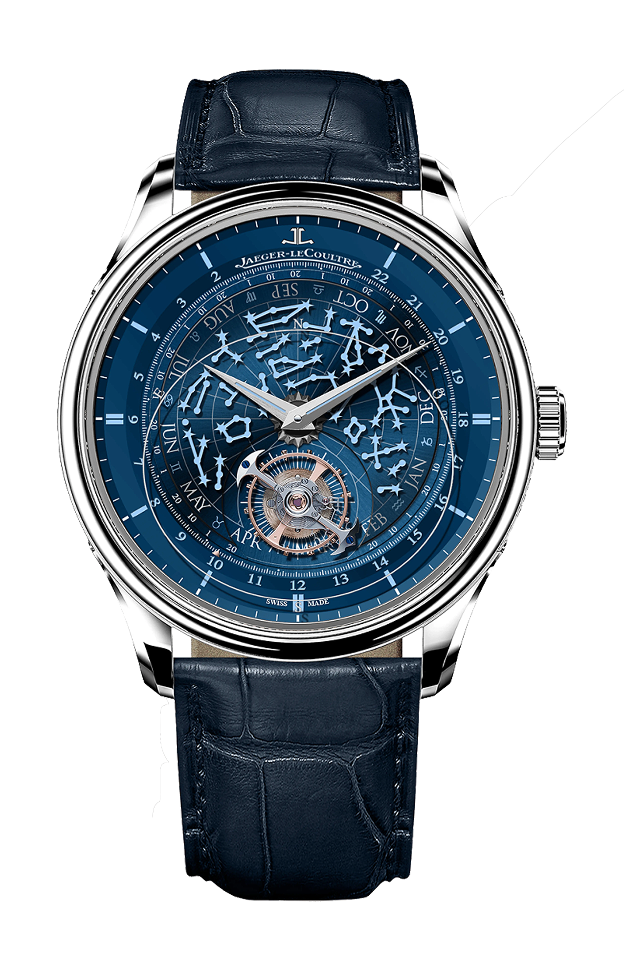 Elegante, raffinato ed estremamente accattivante, il segnatempo Master Grande Tradition Tourbillon CÉleste vanta un quadrante blu sfumato e un tourbillon orbitale che compie una rivoluzione completa attorno ad esso. Il trattamento Super-Luminova® applicato agli indici e alle costellazioni richiama il bagliore dei corpi celesti in una notte limpida. La contemporanea cassa in oro bianco, caratterizzata da design di nuova generazione, dimostra l’eccezionale savoir-faire della manifattura Jaeger-LeCoultre. Edizione limitata a 28 esemplari.