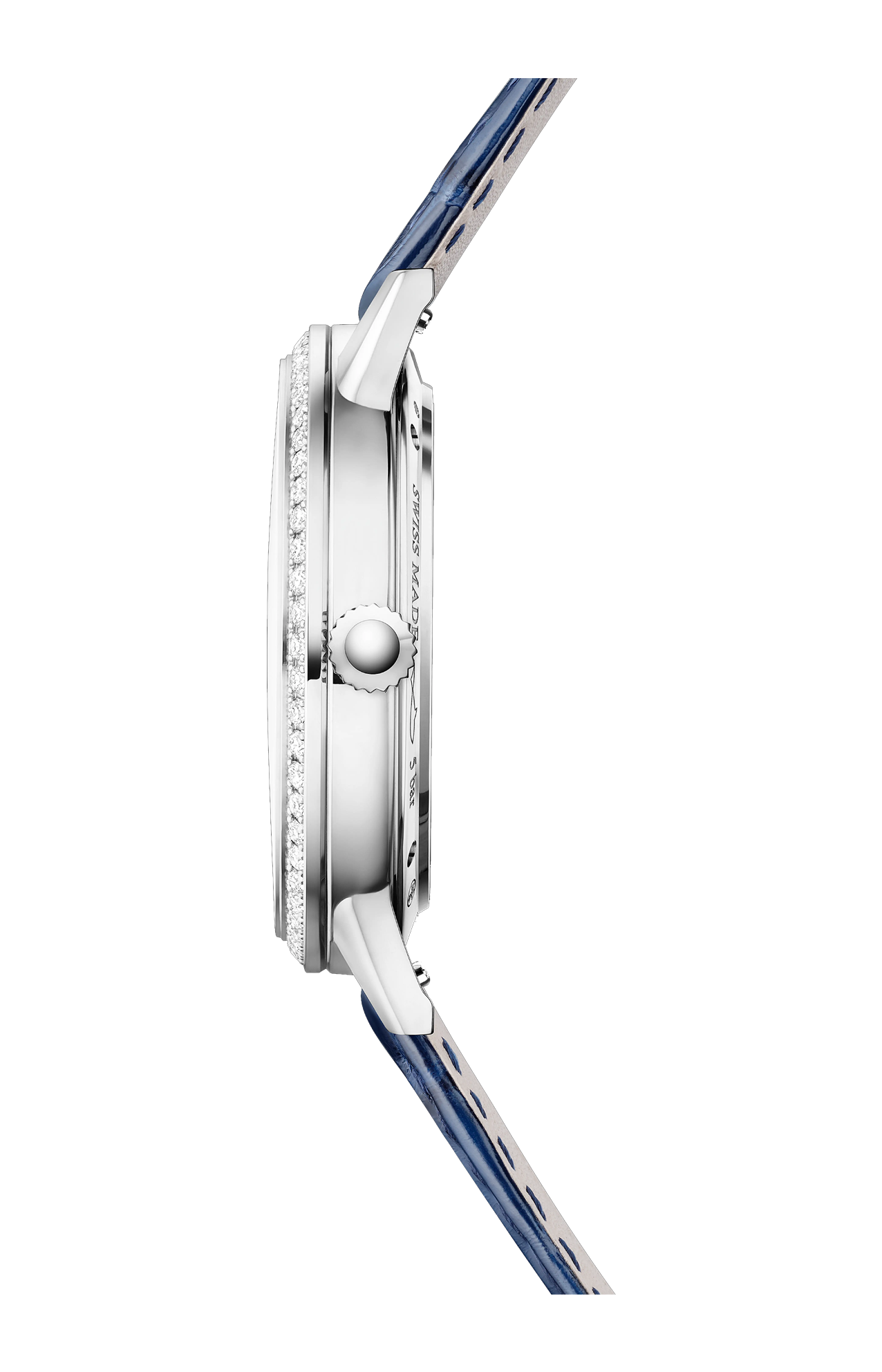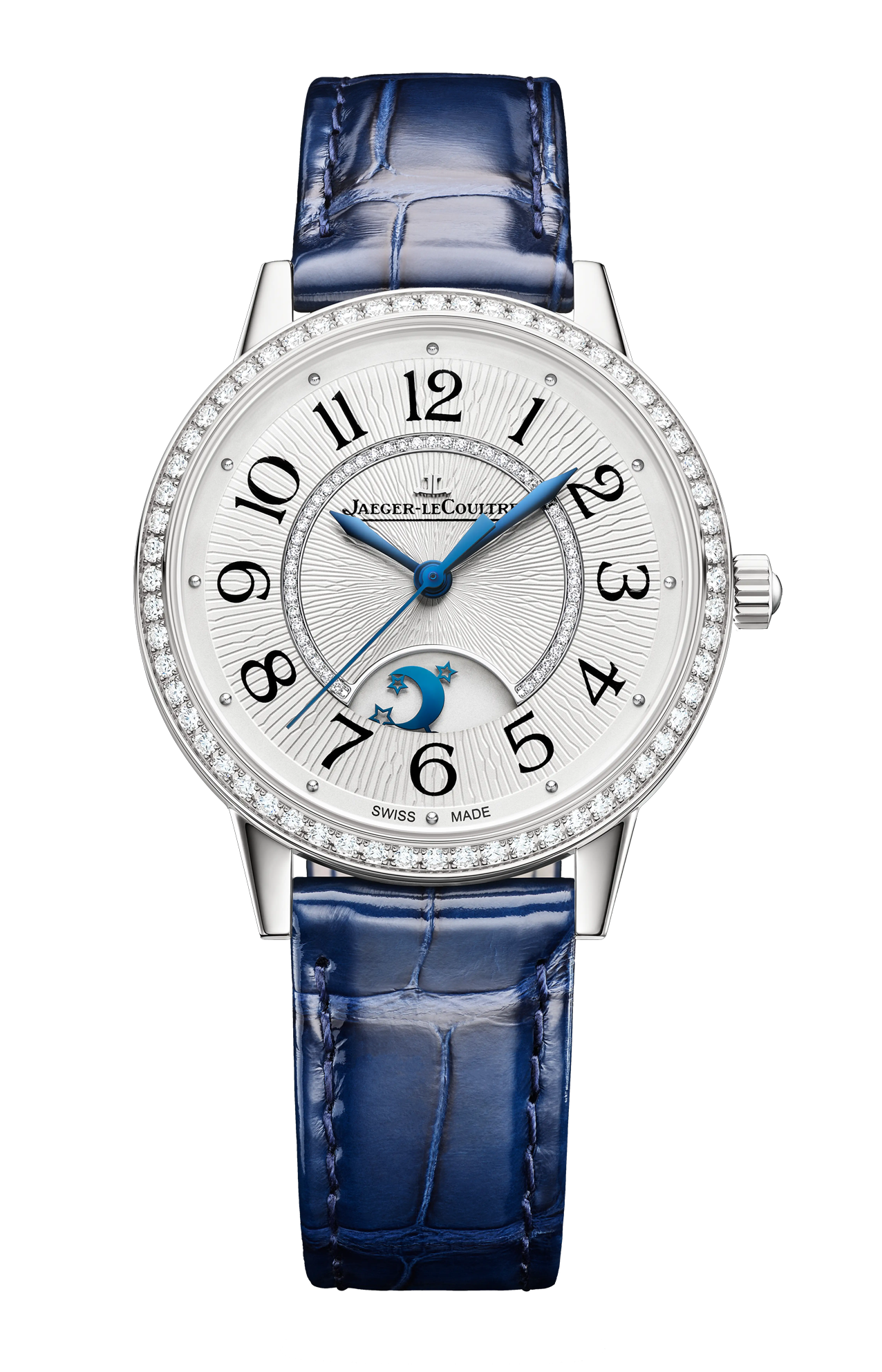 Adornato con una corona di 107 diamanti sulla lunetta e all’interno del quadrante, il Rendez-Vous Night & Day unisce la maestria della Grande Maison nell’arte orologiera e nell’alta gioielleria. In un perfetto equilibrio estetico, ogni dettaglio conferisce al segnatempo uno stile contemporaneo e prezioso. La cassa in acciaio, arricchita da lunetta e fianchi arrotondati e da anse appiattite, si distingue per la sua estrema raffinatezza. Sul quadrante argenté con finitura soleil e motivo guilloché, le funzioni dell’orologio sono perfettamente leggibili: indici e numeri floreali, lancette azzurrate, complicazione a ore 6. Ottimizzato in più aspetti – dal bariletto allo scappamento, fino alla massa oscillante – il Calibro 898 assicura 70 ore di autonomia. I diamanti incastonati a grani e il cinturino in pelle blu conferiscono al Rendez-Vous Night & Day una straordinaria eleganza.