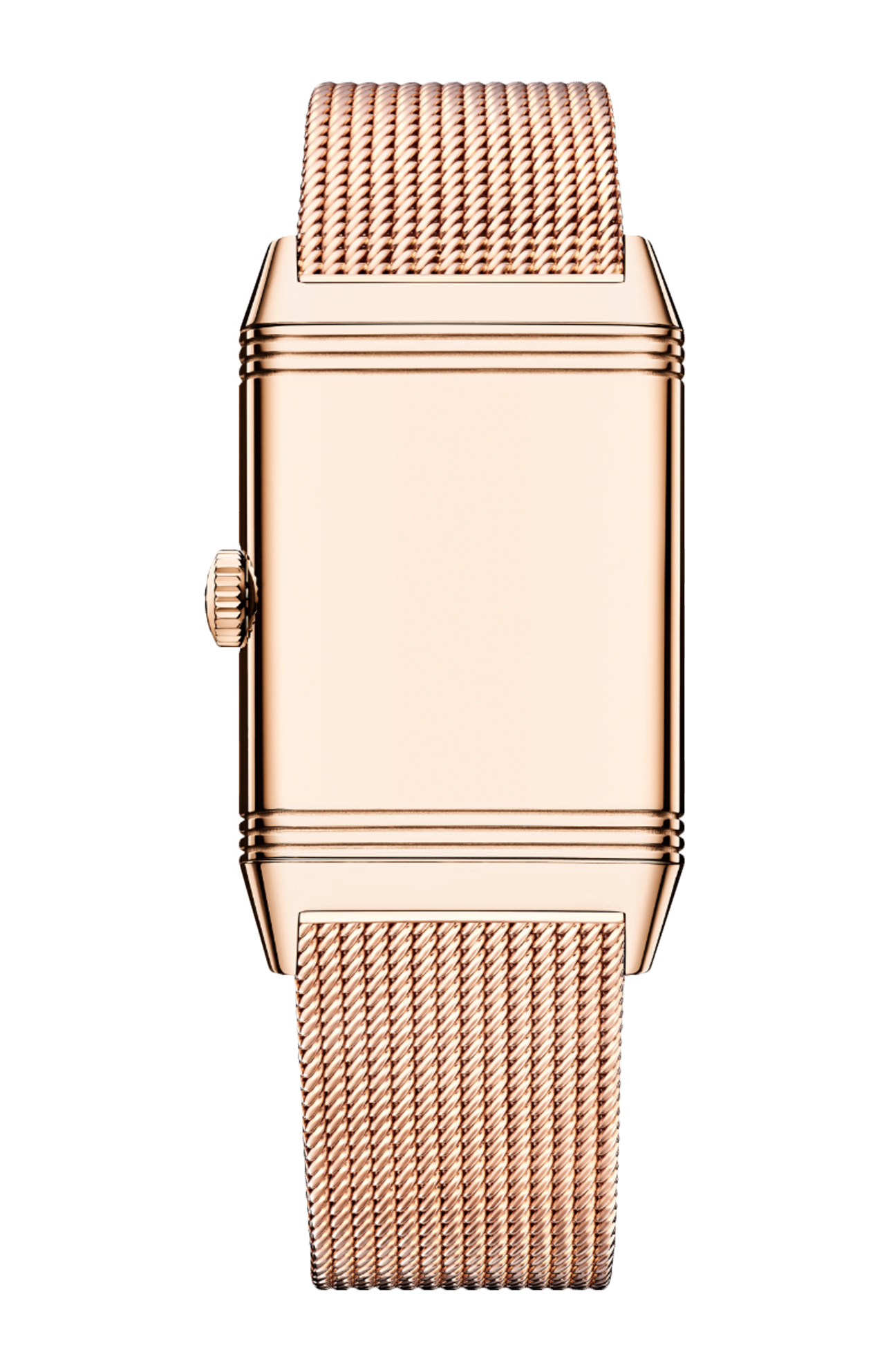 Con la sua cassa in oro rosa, l’orologio Reverso Tribute Monoface 'Or Deco' ha un fascino decisamente vintage. Ai lati del quadrante dorato con finitura a grana, il bracciale presenta una maglia milanese in oro che conferisce al modello uno stile raffinato e prezioso. Questa costruzione offre un comfort ottimale al polso. La finezza del bracciale si abbina alla sottigliezza della cassa composta da 50 componenti, per uno spessore di soli 7,56 mm. Il retro può essere personalizzato con un’incisione. Il calibro di manifattura 822 a carica manuale indica ore, minuti e piccoli secondi e ha una riserva di carica di 42 ore.