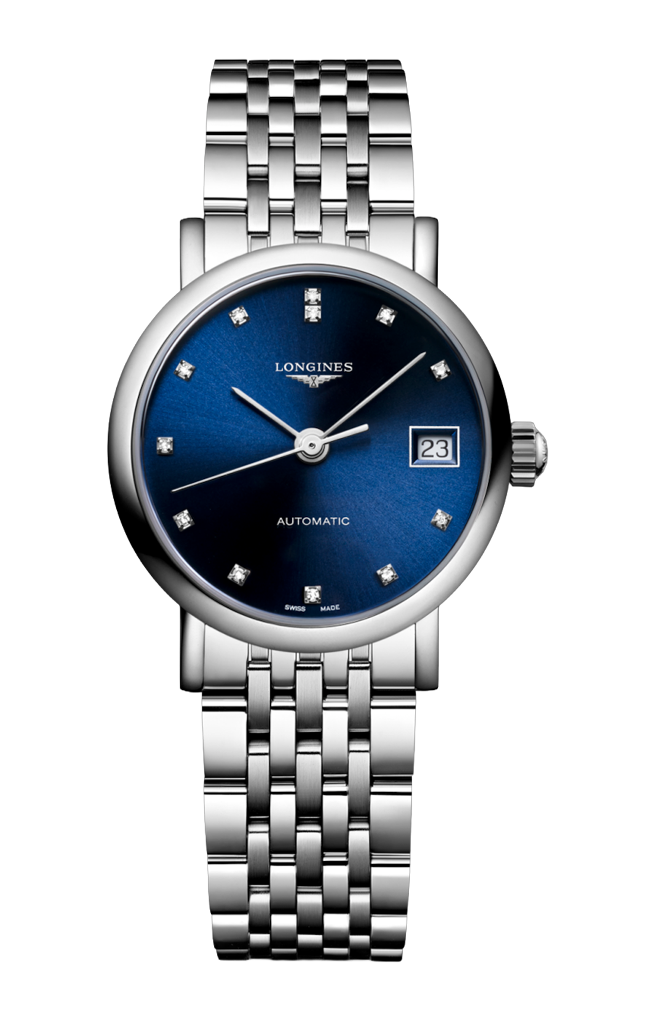 OROLOGIO AUTOMATICO, Ø 25.50 MM, ACCIAIO INOSSIDABILE, L4.309.4.90.6 DATE, MOVIMENTO MECCANICO A CARICA AUTOMATICA CON FREQUENZA DI 28'800 ALTERNANZE ORARIE E RISERVA DI CARICA DI CIRCA 45 ORE, BILANCIERE-SPIRALE IN SILICIO MONOCRISTALLINO. IMPERMEABILE FINO A 3 BAR, VETRO ZAFFIRO ANTIGRAFFIO. QUADRANTE BLU A RAGGI DI SOLE. BRACCIALE IN ACCIAIO INOSSIDABILE, CON CHIUSURA DÉPLOYANTE A TRIPLA SICUREZZA E MECCANISMO DI APERTURA A PRESSIONE.