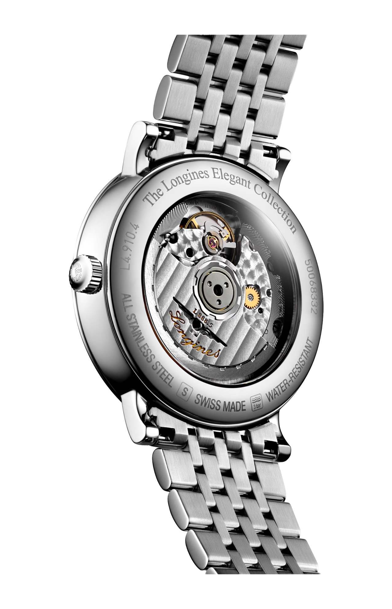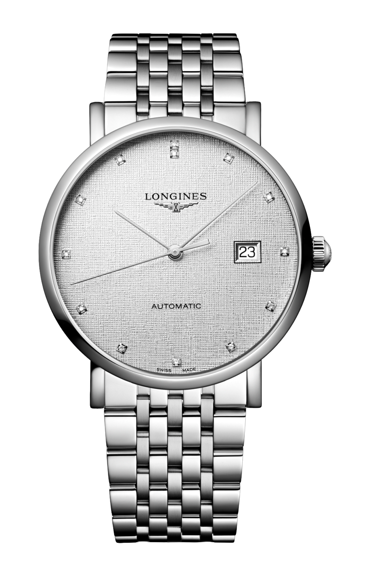 OROLOGIO AUTOMATICO, Ø 39.00 MM, ACCIAIO INOSSIDABILE, L4.910.4.79.6 DATE, MOVIMENTO MECCANICO A CARICA AUTOMATICA CON FREQUENZA DI 25'200 ALTERNANZE ORARIE E RISERVA DI CARICA DI CIRCA 72 ORE, BILANCIERE-SPIRALE IN SILICIO MONOCRISTALLINO. IMPERMEABILE FINO A 3 BAR, VETRO ZAFFIRO ANTIGRAFFIO. QUADRANTE STRIPED SILVER. BRACCIALE IN ACCIAIO INOSSIDABILE, CON CHIUSURA DÉPLOYANTE A TRIPLA SICUREZZA E MECCANISMO DI APERTURA A PRESSIONE.
