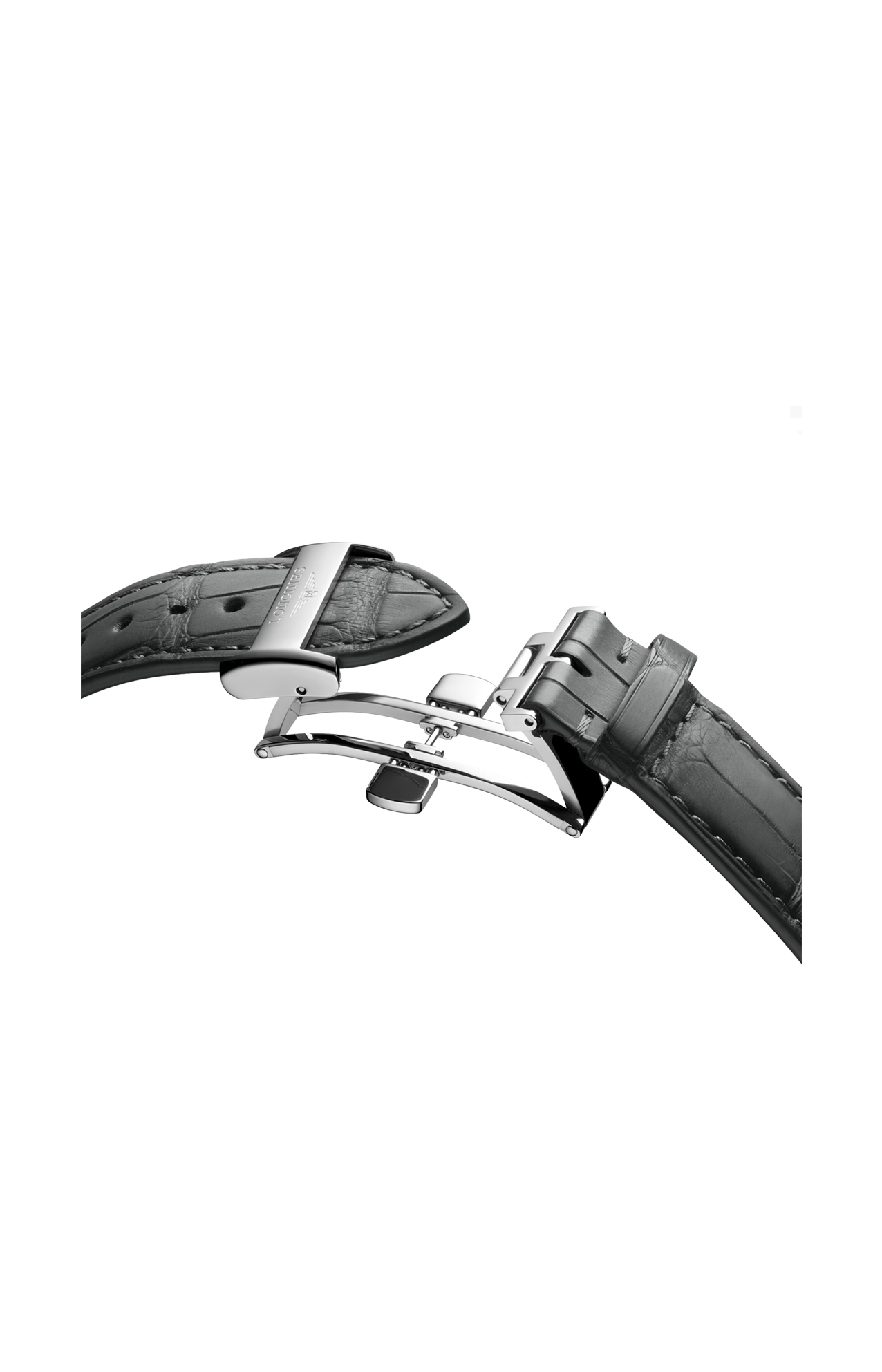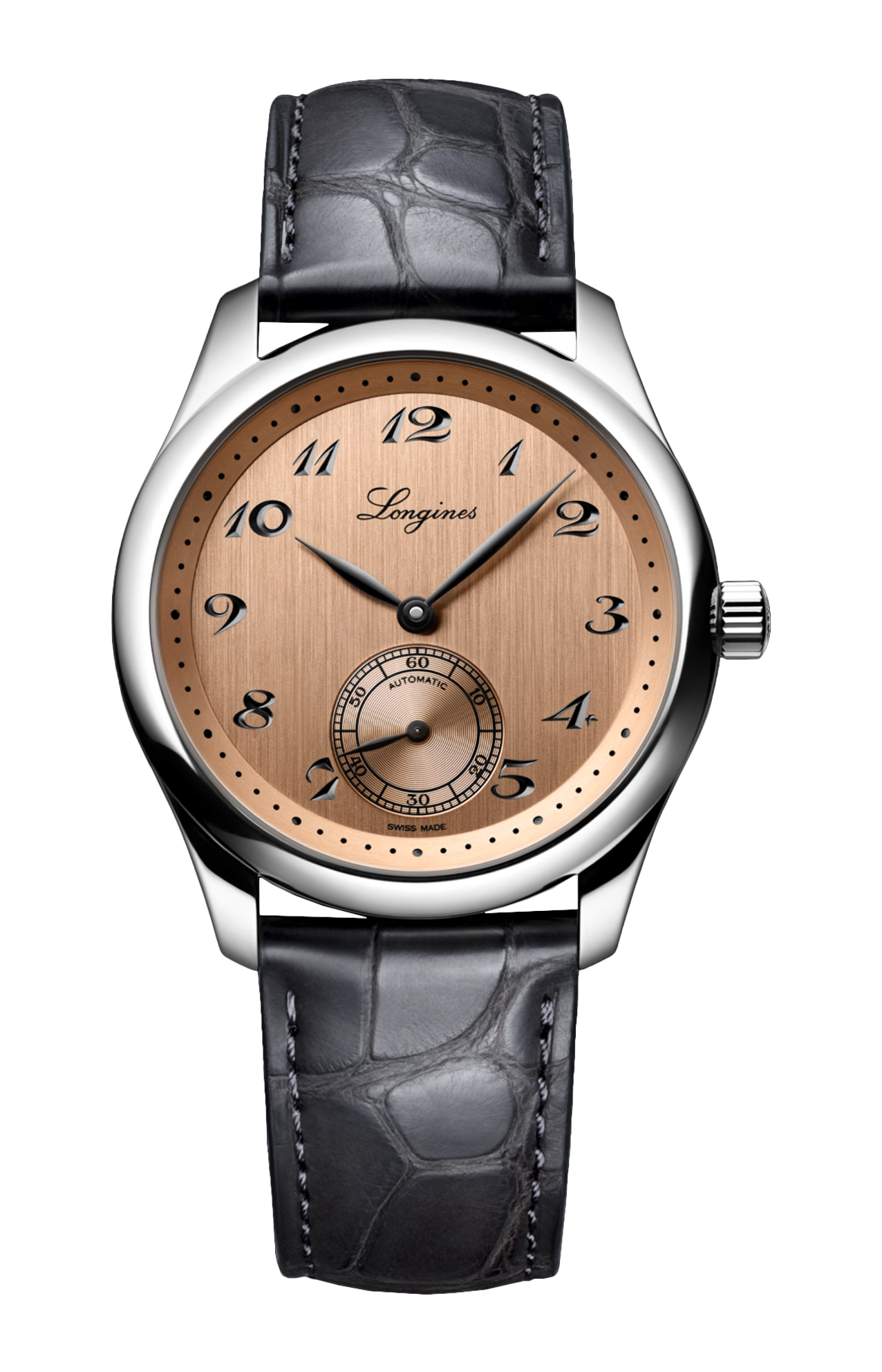 Movimento meccanico a carica automatica con frequenza di 25'200 alternanze orarie e riserva di carica di circa 72 ore, bilanciere-spirale in silicio monocristallino. Impermeabile fino a 3 bar, vetro zaffiro antigraffio con trattamento antiriflesso multistrato su entrambi i lati. Quadrante salmone. Bracciale in cinturino in alligatore, con chiusura déployante a tripla sicurezza e meccanismo di apertura a pressione.