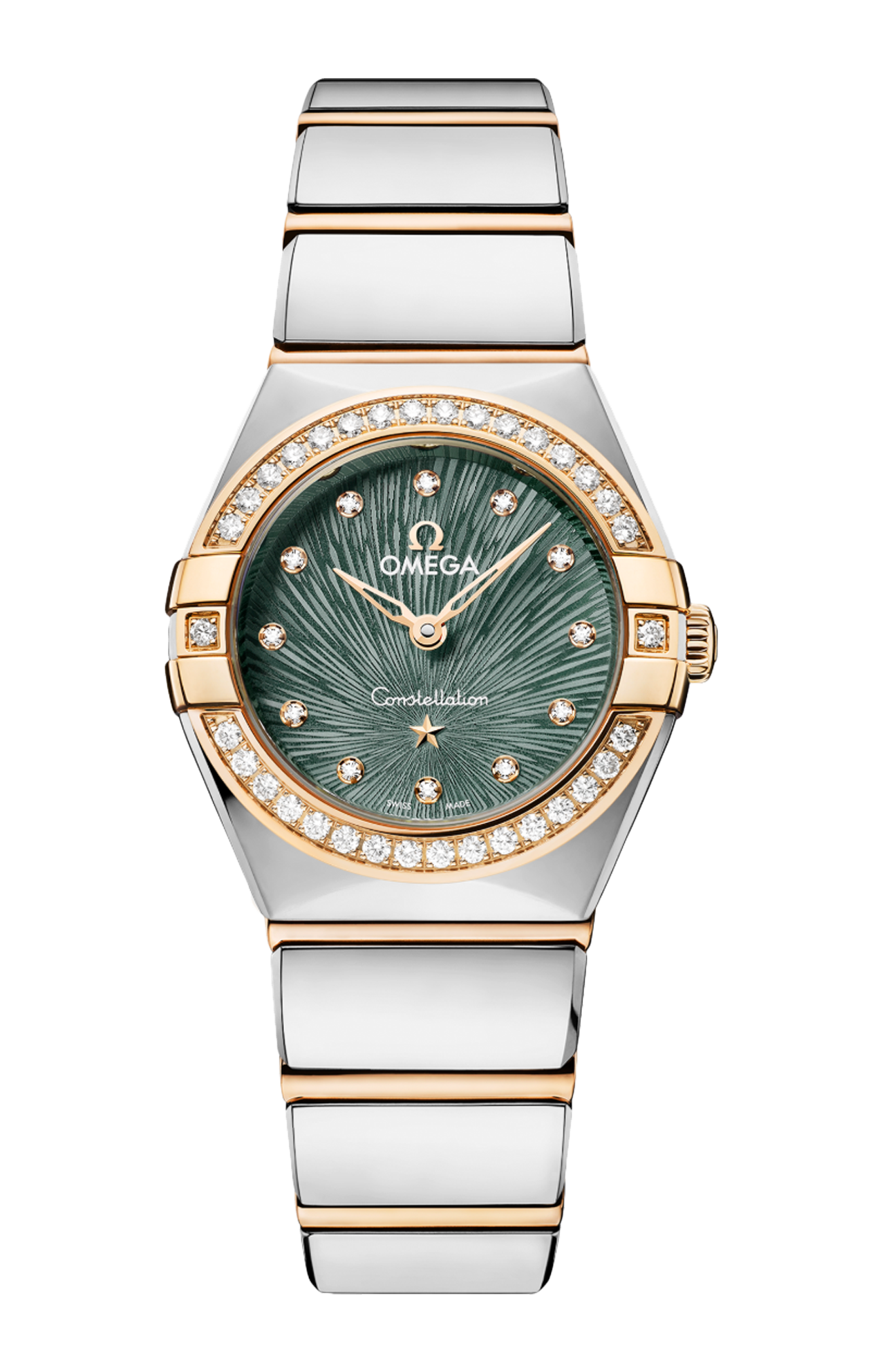 Unione di stile raffinato e precisione stellare, l'iconico Constellation di Omega è caratterizzato dalla celebre cassa con sfaccettature a mezzaluna e griffe lucide ai lati.