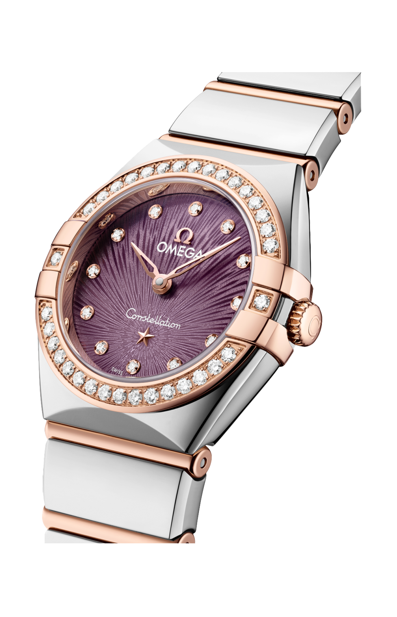 Unione di stile raffinato e precisione stellare, l'iconico Constellation di Omega è caratterizzato dalla celebre cassa con sfaccettature a mezzaluna e griffe lucide ai lati.