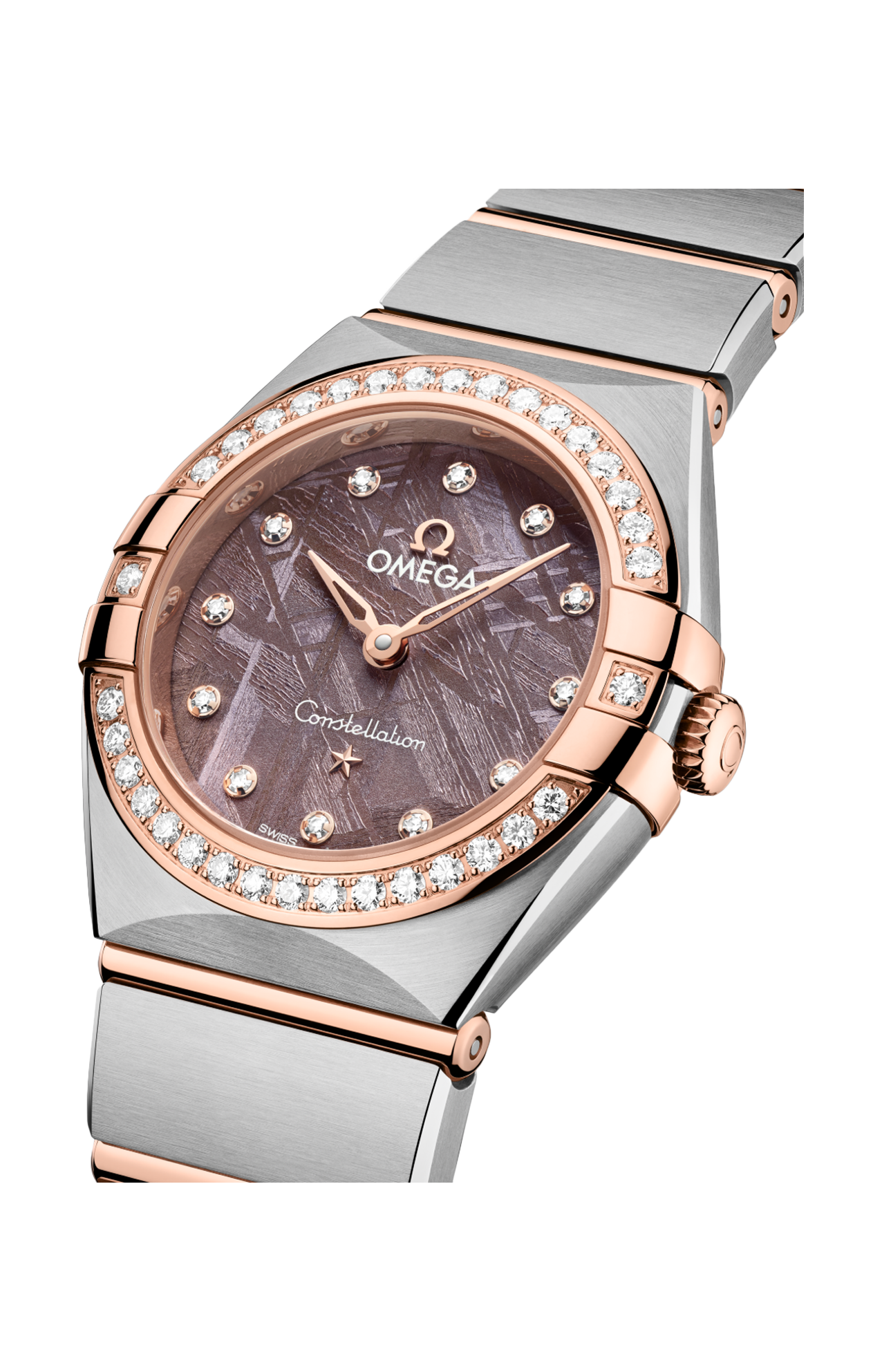 L’orologio presenta una cassa da 25 mm corredata da un bracciale “mono rang” in acciaio inossidabile e oro Sedna™ 18K e integra molte delle caratteristiche distintive della linea Constellation, come le griffe lucide, le sfaccettature a mezzaluna e la lunetta tempestata di diamanti.