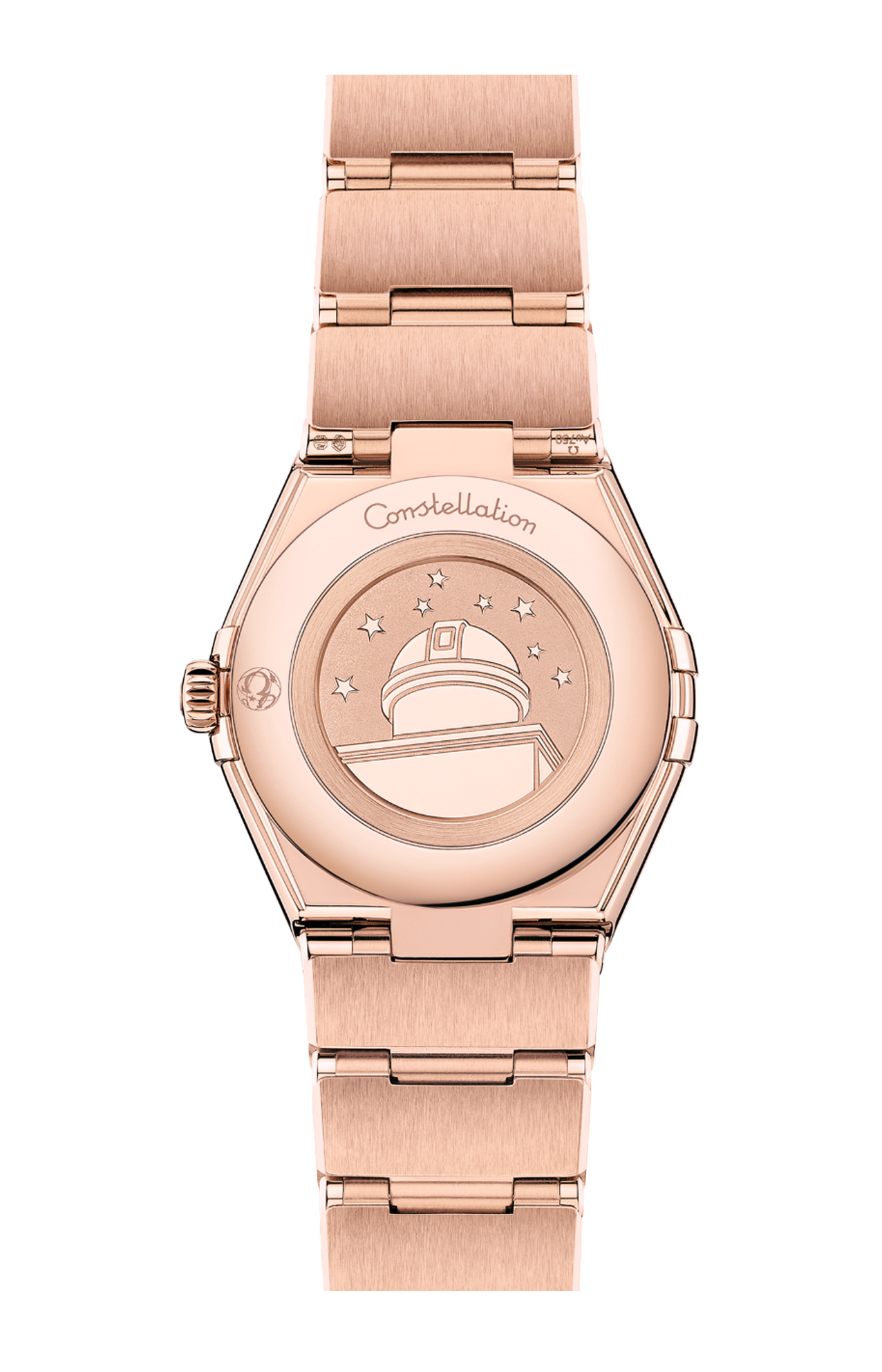 Alloggiato dietro al fondello caratterizzato da un medaglione Constellation con impressa l’effigie dell’osservatorio, anima l’orologio il calibro Omega 4061.