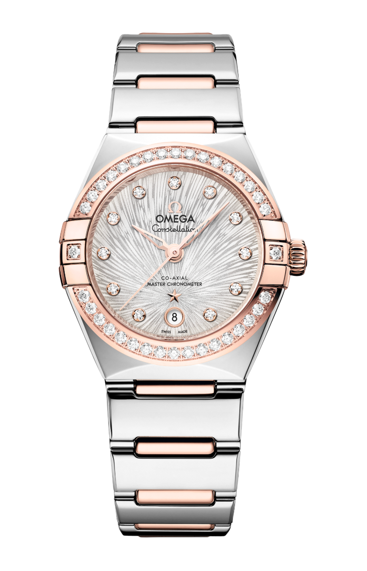 Unione di stile raffinato e precisione stellare, l'iconico Constellation di Omega è caratterizzato dalla celebre cassa con sfaccettature a mezzaluna e griffe lucide ai lati.