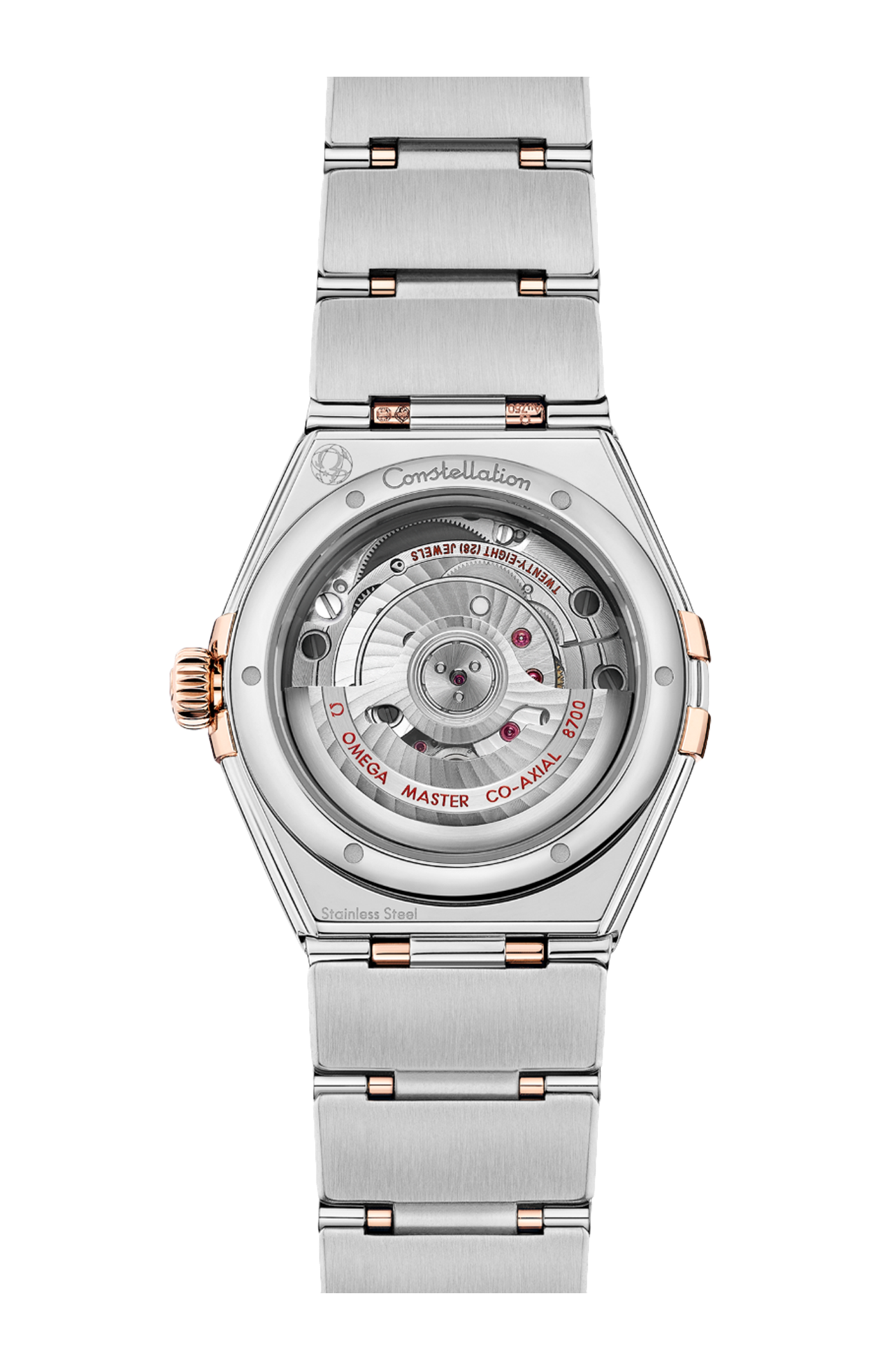 L'orologio, corredato dal caratteristico bracciale "Mono Rang" con comodo sistema di regolazione, è animato dal calibro Omega Co-Axial Master Chronometer 8700, visibile attraverso il fondello in vetro zaffiro.