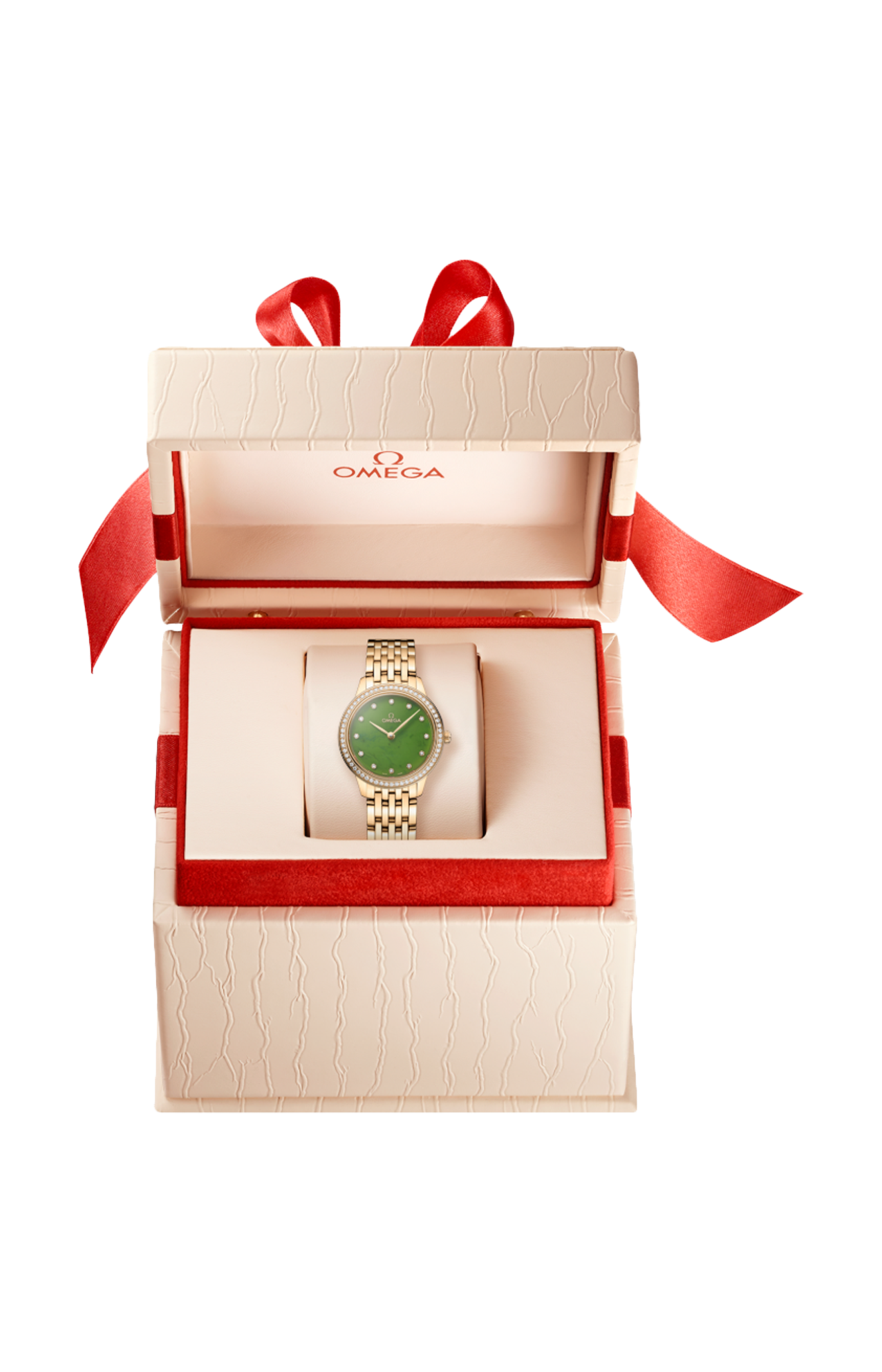 Corredato da un bracciale in oro giallo 18K, il segnatempo è animato dal calibro Omega 4061 al quarzo che offre una durata della batteria di almeno 48 mesi.