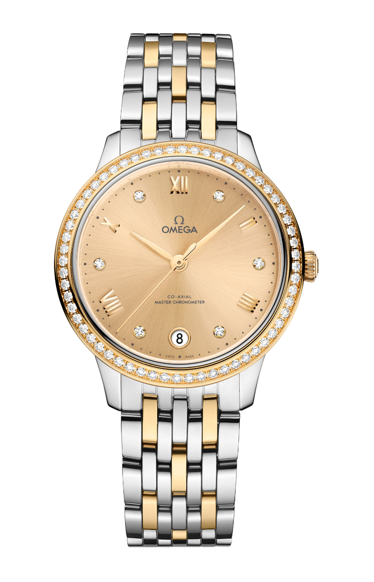 L’orologio, certificato Master Chronometer, è corredato da un bracciale in oro giallo e acciaio inossidabile, e animato dal calibro Omega Master Co-Axial 8800, visibile attraverso il fondello in vetro zaffiro resistente ai graffi.